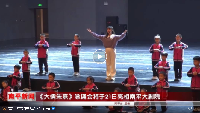 大家現在看到的就是我們即將21號上演的《大儒朱熹》的暖場表演。有小學低、小學高,還有中學,分三個層次為大家來展現我們朱子的經典詩詞吟誦。 據了解 《大儒朱熹——走進朱子大型交響詠誦會》 由南平市人民政府主辦 中共南平市委宣傳部 南平市文化和旅游局承辦
