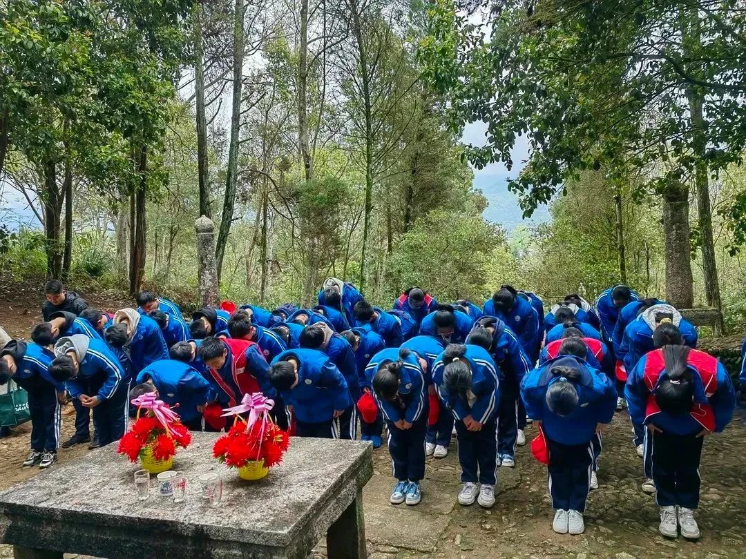 閩北朱子后裔聯誼會會長朱春水恭讀祭文 清明期間,為緬懷悼念先賢,弘揚朱子理學文化,黃坑鎮中小學老師、學生開展祭掃朱熹墓、參觀朱文公紀念館等活動。徒步掃墓奠先賢,五育并舉促成長。通過此次清明祭掃活動,讓師生進一步了解朱子理學文化,不斷增強文化自信和歷史責任感。