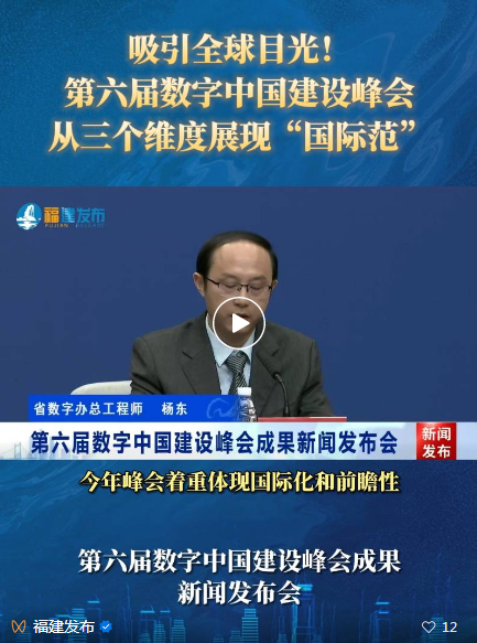 5月4日,福建省人民政府新聞辦公室舉辦第六屆數字中國建設峰會成果新聞發布會。 4月27日至28日 第六屆數字中國建設峰會 在福建福州舉辦 本屆峰會舉辦成果如何? 這組數據帶你了解 ↓↓↓