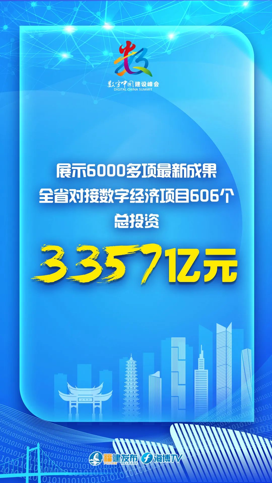 “國際范”越來越足 成功舉辦數字絲路分論壇、閩港數字經濟合作論壇等活動,吸引超30個國家駐華使領館、國際組織、科研機構和100多家跨國企業代表參會; “兩展”均設置國際展區,吸引了亞馬遜、ABB、英特爾等知名外企參展; 創新大賽深化與聯合國人居署、教科文組織等國際機構合作,吸引了來自哈佛大學、倫敦大學、新加坡國立大學等海外院校選手參賽,峰會國際化共享開放程度顯著提升。 峰會成果 有力推動項目簽約和經貿合作 本屆峰會期間,全省共對接數字經濟項目606個、總投資3357億元,其中集中簽約數字經濟重點項目52個、總投資581億元,項目平均投資額較上屆增長30%; 中國國際數字產品博覽會落實交易簽約金額23.8億元、意向成交金額476億元,分別較上一屆增長124%、23%。