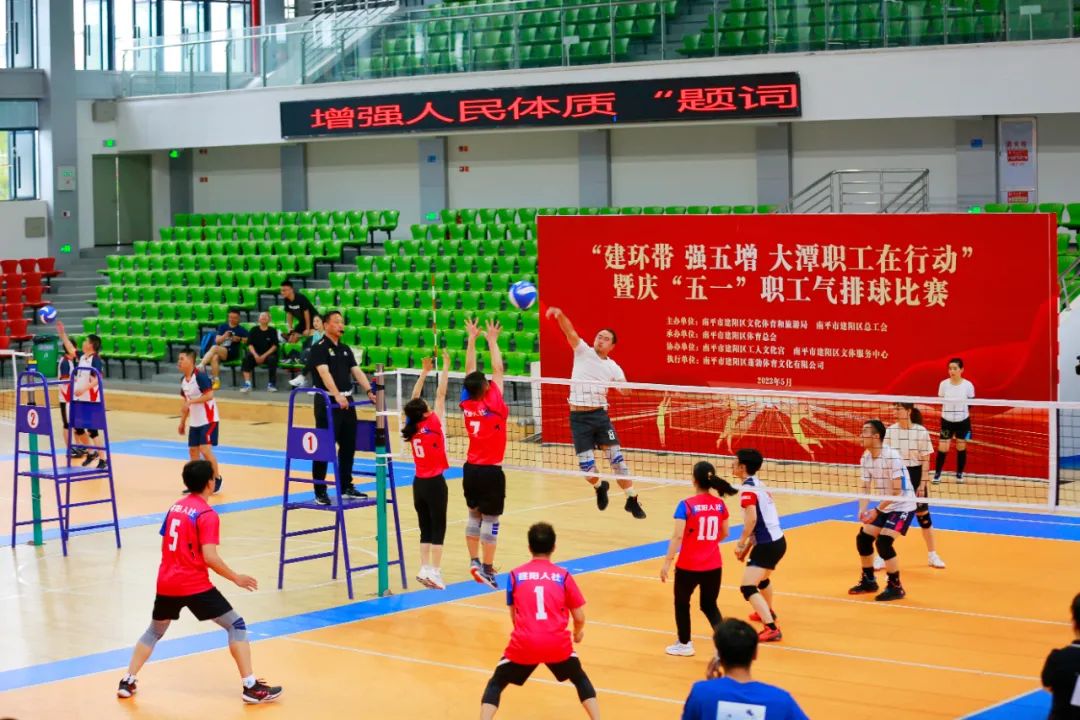 5月20日,由南平市建陽(yáng)區(qū)總工會(huì)、區(qū)文化體育和旅游局聯(lián)合舉辦的“建環(huán)帶 強(qiáng)五增 大潭職工在行動(dòng)”暨慶“五一”職工氣排球比賽在建陽(yáng)區(qū)體育館正式開幕。