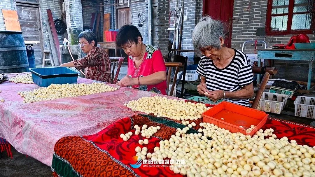 在蓮子加工點(diǎn),一顆顆飽滿的蓮子從剝殼一體機(jī)里滑出,經(jīng)過(guò)分揀、取芯、烘干等程序,將“美麗資源”轉(zhuǎn)化成“美麗經(jīng)濟(jì)”。