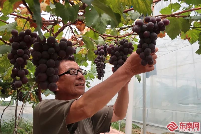 林遠(yuǎn)興查看葡萄生長狀態(tài) 東南網(wǎng)記者肖練冰 攝 20多年前,仁山村是遠(yuǎn)近聞名的貧困山村,時(shí)任村黨支部書記的林遠(yuǎn)興為了鄉(xiāng)村脫貧想盡了辦法。仁山村一直以水稻種植為主,畝產(chǎn)值不足1000元,農(nóng)民收入低。 “香蕉、杏鮑菇、烤煙……嘗試了很多農(nóng)作物,最終都失敗了。”霜凍減產(chǎn)、洪澇損毀、銷售不佳,每一個(gè)困難對(duì)林遠(yuǎn)興的嘗試都是重大打擊。盡管屢次失敗,但他并沒有因此放棄。林遠(yuǎn)興總結(jié)失敗經(jīng)驗(yàn),綜合仁山村的水土、交通、天氣等因素,又赴麻沙、考亭等地考察,最終將目光落在了葡萄的身上。 “早期種的品種是京亞,這種葡萄早熟,可以提前占領(lǐng)市場。但口感偏酸,所以銷量不是特別好。”盡管仁山村的氣候土壤十分適宜葡萄的生長,但銷路窄、口感欠佳的因素沒能打破種植僵局。 林遠(yuǎn)興逐漸意識(shí)到農(nóng)業(yè)的根本出路在科技。當(dāng)他再赴考亭學(xué)習(xí)時(shí),特意邀請(qǐng)了葡萄種植專家謝福鑫老師下村指導(dǎo)。“2003年,通過謝老師的指導(dǎo),我們最終確定種植巨峰葡萄。如今,巨峰葡萄已經(jīng)是仁山響當(dāng)當(dāng)?shù)恼信评玻 ?/span> 作為村黨支部書記,林遠(yuǎn)興十分明白村民的擔(dān)憂,之前的失敗大家看在眼里,如果沒有足夠的把握,無法動(dòng)員農(nóng)戶改種、多種、擴(kuò)種巨峰葡萄。于是,林遠(yuǎn)興先行先試、帶頭種植。“2003年我種植巨峰葡萄2.3畝,第二年收獲頗豐,口感也好。”經(jīng)歷多次失敗后,第一次嘗到自己種出的甘甜果實(shí)時(shí),林遠(yuǎn)興心中篤定“這次一定能行。” 隨即,他鼓勵(lì)黨員同志帶頭發(fā)展葡萄產(chǎn)業(yè),第一年僅動(dòng)員23戶村民種植葡萄74畝,其中黨員占三分之一。第二年葡萄畝產(chǎn)值達(dá)到5000元,極大增強(qiáng)村民種植葡萄的積極性和自信心。 如今,林遠(yuǎn)興是仁山村的葡萄種植大戶。多年來,他發(fā)展葡萄產(chǎn)業(yè),帶動(dòng)村民發(fā)家致富奔小康,獲得村民一致好評(píng)。 跨村聯(lián)建 統(tǒng)一管理推動(dòng)產(chǎn)業(yè)發(fā)展 巨峰葡萄打開了仁山村脫貧的一扇新窗。隨著巨峰葡萄在仁山村種植的面積越來越大,水吉鎮(zhèn)的黃家店村、漳墩鎮(zhèn)前溪村、回龍鄉(xiāng)均中村等周邊鎮(zhèn)村也提出要跟著一起種。 “這幾年村里有了些起色,但還遠(yuǎn)遠(yuǎn)不夠。”如何通過發(fā)展葡萄種植,找準(zhǔn)村財(cái)增收好方子,蹚出強(qiáng)村富民新路子,林遠(yuǎn)興反復(fù)思考。他認(rèn)為應(yīng)通過黨建引領(lǐng)、資源整合、抱團(tuán)發(fā)展,成立“跨村合作社”。 2006年,仁山村成立了建陽市山溪葡萄專業(yè)合作社,從最初本村74戶發(fā)展到周邊3個(gè)鄉(xiāng)鎮(zhèn)17個(gè)行政村422戶參股入社,注冊(cè)資金從3.7萬元擴(kuò)充至426.1萬元。