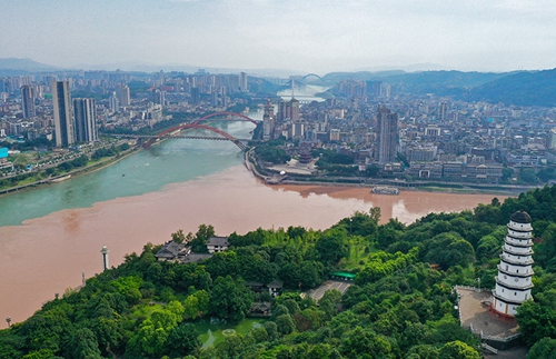 四川省宜賓市三江口景色(2022年6月30日攝,無人機照片)。新華社記者 王曦 攝 2022年6月8日,三江匯流處,習近平總書記駐足眺望,聽取情況介紹。 當地負責同志匯報:宜賓市也曾面臨“化工圍江、污染繞城”問題。近年來,通過清退高耗能高污染企業、關閉造紙小作坊、關停江邊挖沙場、減少污水排放等措施,持續改善岸線生態環境。 習近平總書記表示肯定,同時強調:“作為長江上游城市,要強化上游擔當,不能沿江‘開黑店’、排污水,要以能釀出美酒的標準,想方設法保護好長江上游水質,造福長江中下游和整個流域。”