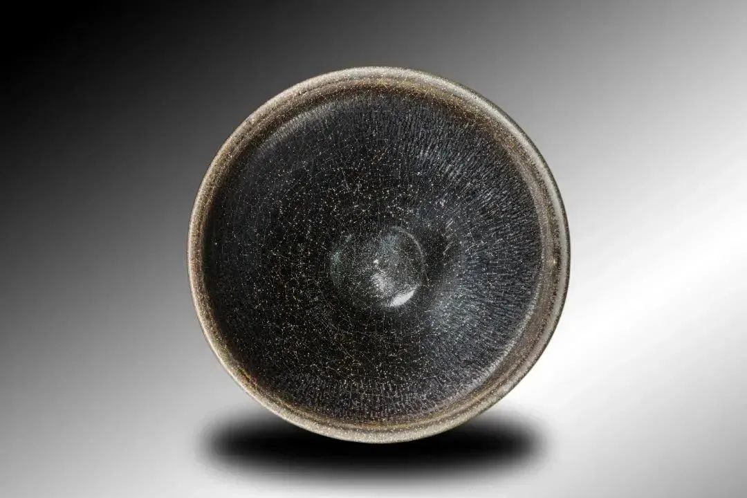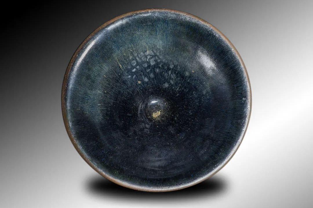 銀油滴撇口大盞 口21 高7 底5.2 釉面呈銀色 口沿處 布滿銀色小油滴 盞內(nèi)為均勻的兔毫紋理 口沿外撇程度大 表現(xiàn)力強(qiáng) 觀賞價值高 |