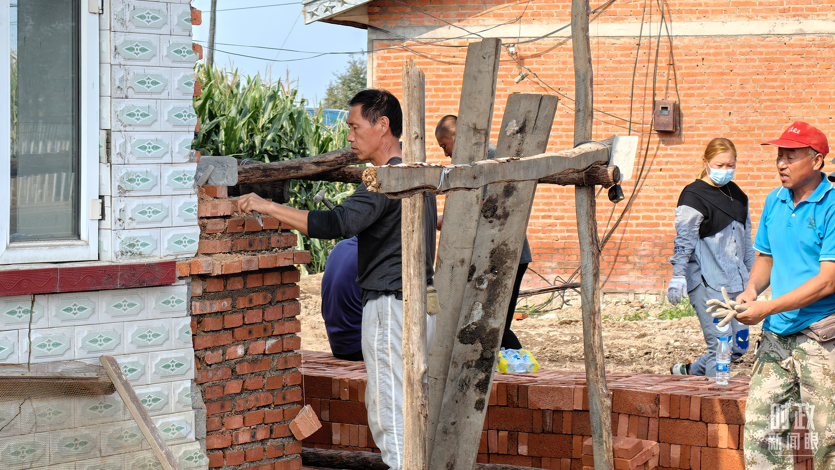 △龍王廟村內,村民正在修繕在洪水中受損的房屋。(總臺央廣記者潘毅拍攝) 看群眾:察實情、問冷暖、聽民聲 在這次洪災中,尚志市受災人口2.85萬戶、7.9萬人。習近平總書記當天考察的龍王廟村,全村戶籍人口327戶,常住人口193戶,這次過水受損房屋就有145戶。