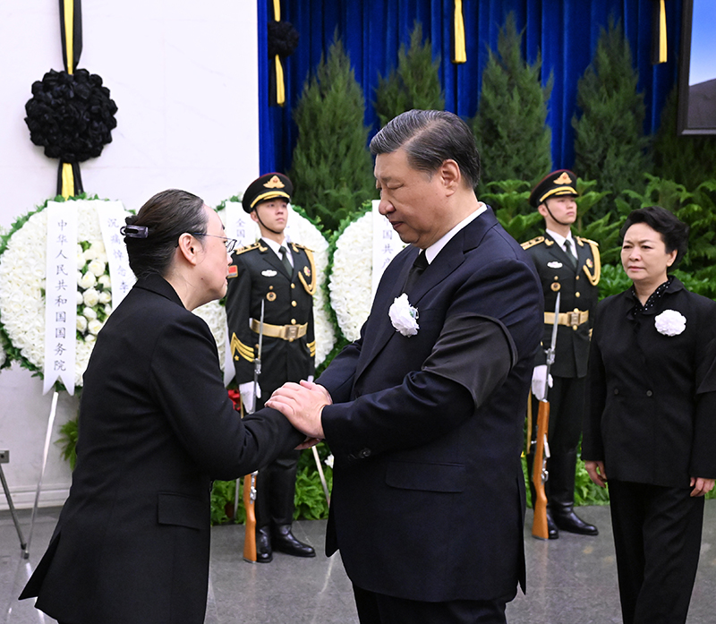 11月2日,李克強(qiáng)同志遺體在北京八寶山革命公墓火化。習(xí)近平、李強(qiáng)、趙樂(lè)際、王滬寧、蔡奇、丁薛祥、李希、韓正等前往八寶山送別,胡錦濤送花圈表示哀悼。這是習(xí)近平與李克強(qiáng)親屬握手,表示深切慰問(wèn)。新華社記者 謝環(huán)馳 攝 李克強(qiáng)同志因突發(fā)心臟病,經(jīng)全力搶救無(wú)效,于2023年10月27日0時(shí)10分在上海逝世,享年68歲。 李克強(qiáng)同志搶救期間和逝世后,習(xí)近平、李強(qiáng)、趙樂(lè)際、王滬寧、蔡奇、丁薛祥、李希、韓正、胡錦濤等同志,前往醫(yī)院看望或通過(guò)各種形式對(duì)李克強(qiáng)同志逝世表示沉痛哀悼并向其親屬表示深切慰問(wèn)。 2日上午,八寶山革命公墓禮堂莊嚴(yán)肅穆,哀樂(lè)低回。正廳上方懸掛著黑底白字的橫幅“沉痛悼念李克強(qiáng)同志”,橫幅下方是李克強(qiáng)同志的遺像。李克強(qiáng)同志的遺體安臥在鮮花翠柏叢中,身上覆蓋著鮮紅的中國(guó)共產(chǎn)黨黨旗。 上午9時(shí)許,習(xí)近平和夫人彭麗媛,李強(qiáng)、趙樂(lè)際、王滬寧、蔡奇、丁薛祥、李希、韓正等,在哀樂(lè)聲中緩步來(lái)到李克強(qiáng)同志的遺體前肅立默哀,向李克強(qiáng)同志的遺體三鞠躬,并與李克強(qiáng)同志親屬一一握手,表示慰問(wèn)。胡錦濤送花圈,對(duì)李克強(qiáng)同志逝世表示哀悼。 黨和國(guó)家有關(guān)領(lǐng)導(dǎo)同志前往送別或以各種方式表示哀悼。中央和國(guó)家機(jī)關(guān)有關(guān)部門(mén)負(fù)責(zé)同志,李克強(qiáng)同志生前友好和家鄉(xiāng)代表也前往送別。 |