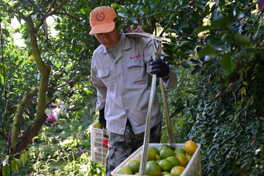 工人們正在搬運桔柚 “我種了30多畝桔柚,今年產量約有12萬斤,產值可以達到50余萬元,每天都有訂單上門,銷路很好。”看著一框框的桔柚,范寶順高興地說。因為品種好、口感好、品質穩定,范寶順家的桔柚訂單供不應求。