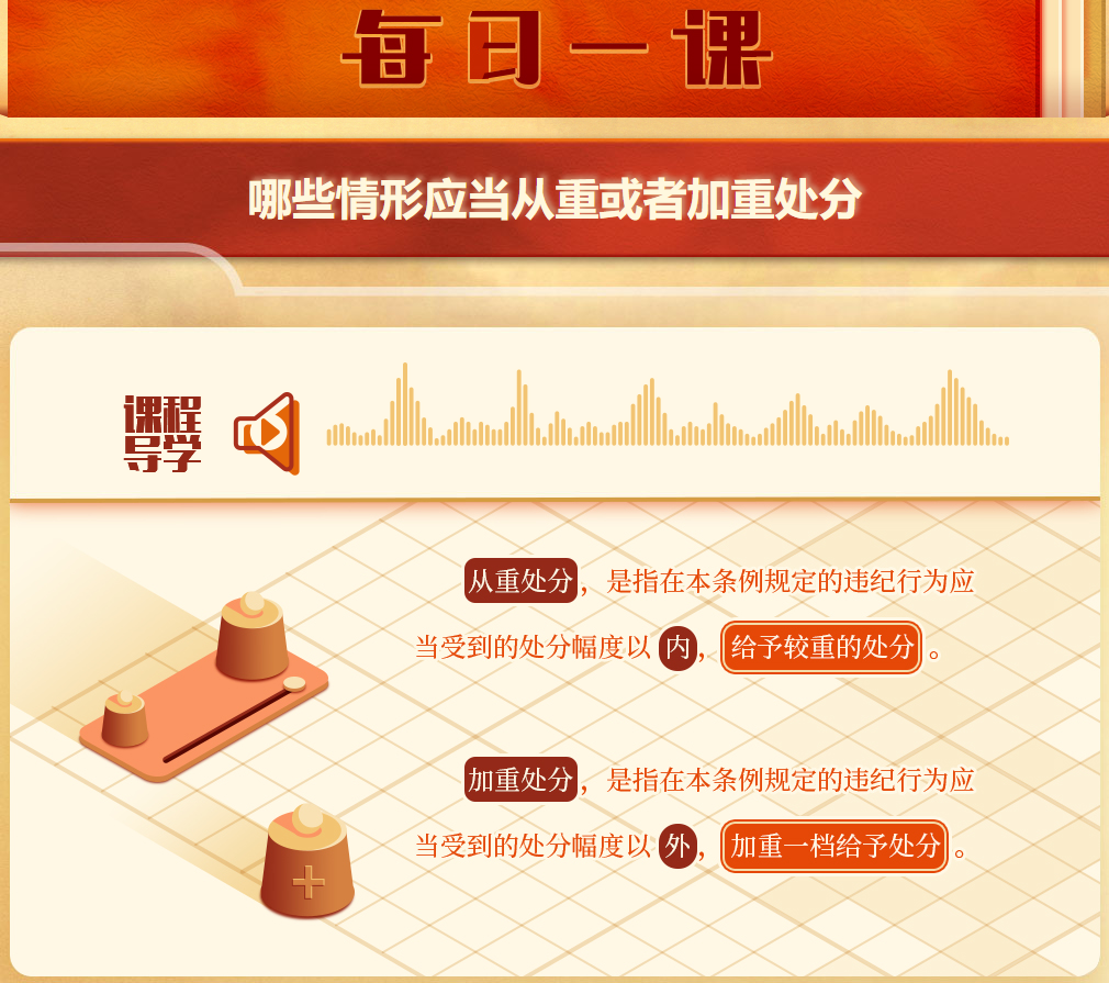 《中國(guó)共產(chǎn)黨紀(jì)律處分條例》規(guī)定,紀(jì)律審查中有下列行為之一的,應(yīng)當(dāng)從重或加重處分: (一)強(qiáng)迫、唆使他人違紀(jì)。 “強(qiáng)迫他人違紀(jì)”,是指在被強(qiáng)迫的黨員沒(méi)有違紀(jì)主觀故意情況下,違背其意志,采取脅迫等手段迫使其違紀(jì)的情形。 “唆使他人違紀(jì)”,是指教唆、挑動(dòng)、指使其他黨員違紀(jì)的情形。 (二)拒不上交或者退賠違紀(jì)所得。 (三)違紀(jì)受處分后又因故意違紀(jì)應(yīng)當(dāng)受到黨紀(jì)處分。 這就是通常所說(shuō)的“再犯”,指黨員因違紀(jì)受到黨紀(jì)政務(wù)等處分后,又再次實(shí)施了應(yīng)當(dāng)受到黨紀(jì)處分的故意違紀(jì)行為。 (四)違紀(jì)受處分后,又被發(fā)現(xiàn)其受處分前沒(méi)有交代的其他應(yīng)當(dāng)受到黨紀(jì)處分的問(wèn)題。 這就是通常所說(shuō)的“漏錯(cuò)”。構(gòu)成漏錯(cuò)的條件,主要包括以下三個(gè):一是違紀(jì)黨員前一次受到的是除開(kāi)除黨籍以外的黨紀(jì)處分,或者是政務(wù)處分等處分;二是遺漏違紀(jì)行為必須是在處分決定生效后發(fā)現(xiàn)的;三是遺漏違紀(jì)行為必須是在處分決定生效以前實(shí)施的。 黨員受處分后又被發(fā)現(xiàn)此前未交代的違紀(jì)行為,說(shuō)明其在前次組織審查期間,對(duì)黨不忠誠(chéng)、不老實(shí),沒(méi)有如實(shí)向組織交代自己存在的應(yīng)當(dāng)受到黨紀(jì)處分的違紀(jì)問(wèn)題,必須從嚴(yán)懲治。 (五)黨內(nèi)法規(guī)規(guī)定的其他從重或者加重處分情形。 |