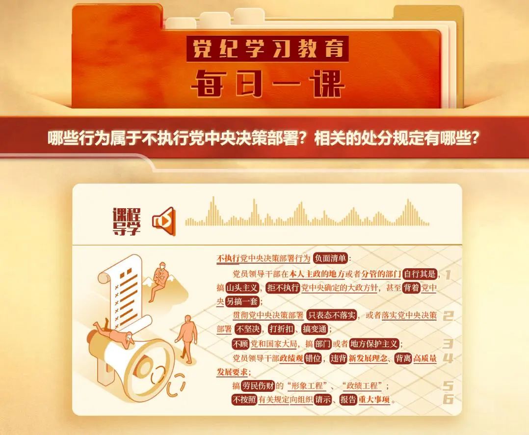 《中國共產黨紀律處分條例》第五十六條、第五十七條、第六十一條對不執行黨中央決策部署行為及其適用的處分種類和幅度作了規定。可分為三類: 1.不落實黨中央大政方針 《條例》第五十六條規定了不落實黨中央大政方針的三種行為表現:黨員領導干部在本人主政的地方或者分管的部門自行其是,搞山頭主義,拒不執行黨中央確定的大政方針,甚至背著黨中央另搞一套;貫徹黨中央決策部署只表態不落實,或者落實黨中央決策部署不堅決,打折扣、搞變通,在政治上造成不良影響或者嚴重后果;不顧黨和國家大局,搞部門或者地方保護主義。 其中,前兩種行為嚴重程度不同:拒不執行黨中央確定的大政方針行為危害更大,性質更惡劣,一旦存在就要給予撤銷黨內職務、留黨察看或者開除黨籍處分;貫徹黨中央決策部署只表態不落實,或者落實黨中央決策部署不堅決,打折扣、搞變通行為,在政治上造成不良影響或者嚴重后果的,視情節輕重給予警告直至開除黨籍處分。不顧黨和國家大局,搞部門或者地方保護主義的,同樣視情節輕重給予警告直至開除黨籍處分。 2.政績觀錯位,違背新發展理念、背離高質量發展要求 《條例》第五十七條規定:黨員領導干部政績觀錯位,違背新發展理念、背離高質量發展要求,給黨、國家和人民利益造成較大損失的,給予警告或者嚴重警告處分;情節較重的,給予撤銷黨內職務或者留黨察看處分;情節嚴重的,給予開除黨籍處分。 實踐中,一些黨員領導干部在貫徹高質量發展要求上掉隊、走偏,有的是能力不足或者工作作風問題,但也有些是政績觀錯位造成的。一些黨員領導干部把干事和個人名利捆綁在一起,私心雜念作祟,醉心于獲取升遷資本,重顯績輕潛績、重面子輕里子,好大喜功、急功近利,在貫徹新發展理念、推動高質量發展中偏離政治要求,造成嚴重危害。《條例》作此規定,有利于推動黨員領導干部切實貫徹黨中央要求,認真踐行正確政績觀,把新發展理念、高質量發展要求落到實處。 此外,該條還專門對搞勞民傷財的“形象工程”、“政績工程”行為作出規定,明確有此行為的,從重或者加重處分。 3.不按規定請示、報告重大事項 《條例》第六十一條規定,不按照有關規定向組織請示、報告重大事項,對直接責任者和領導責任者,情節較重的,給予警告或者嚴重警告處分;情節嚴重的,給予撤銷黨內職務或者留黨察看處分。 重大事項,是指超出黨組織和黨員、領導干部自身職權范圍,或者雖在自身職權范圍內但關乎全局、影響廣泛的重要事情和重要情況,包括黨組織貫徹執行黨中央決策部署和上級黨組織決定、領導經濟社會發展事務、落實全面從嚴治黨責任,黨員履行義務、行使權利,領導干部行使權力、擔負責任的重要事情和重要情況。 作為干部特別是領導干部,在涉及重大問題、重要事項時按規定向組織請示報告,這是必須遵守的規矩。《關于新形勢下黨內政治生活的若干準則》對請示報告制度作了明確規定,《中國共產黨重大事項請示報告條例》進一步確立了請示報告的工作體制機制。《條例》以嚴格的紀律約束,保證相關黨內法規關于請示報告制度和要求的落實。 |