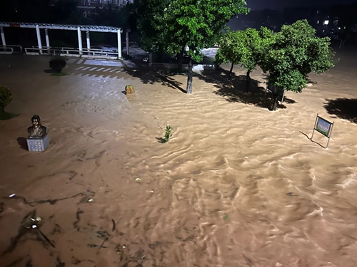 巖前中學變成一片“汪洋”。圖源:武平發布