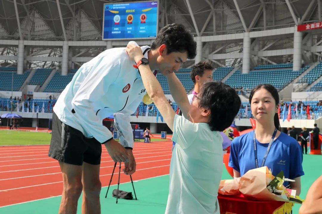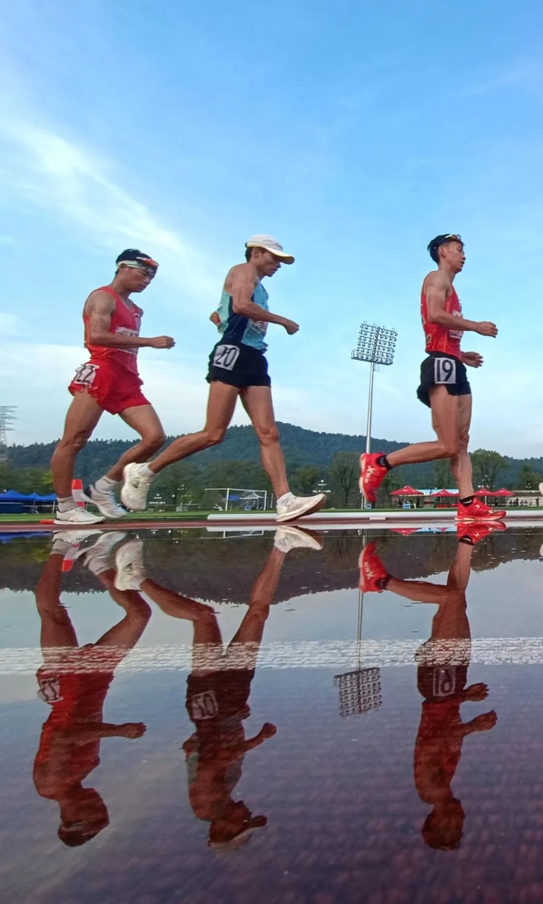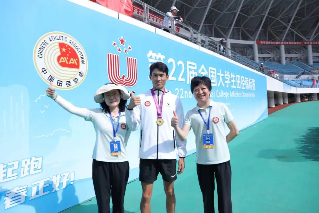 7月15日上午7時,在第22屆全國大學生田徑錦標賽10000米競走男子丁組比賽中,貴州大學代表隊的朱小強同學以“41′53″62”的成績獲得冠軍,為貴州大學代表隊奪得第一枚金牌,也是第22屆全國大學生田徑錦標賽產生的首枚金牌。(鄭可/文 何丹燁 黃杰敏/攝)