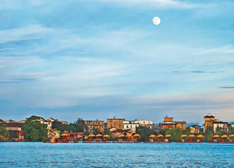 “莆陽賞秋·白塘月色”涵江區2024文旅消費季活動在白塘湖公園舉行。 本報記者 張永定 攝 東南網9月17日訊(福建日報記者 林愛玲)岸邊,百米板凳龍圈燈繞境巡游;湖中,“百米金龍”竹筏游船驚艷亮相;湖面上空“龍”飛“鳳”舞、煙火璀璨……9月13日晚,為期兩個月的“莆陽賞秋·白塘月色”涵江區2024年文旅消費季活動在莆田白塘湖公園拉開帷幕。 圈燈祈福、車鼓、社戲、游園賞月逛燈會……仲秋時節的白塘秋月,自古便交織著絕美的自然景觀與深厚的人文意境,是“莆田二十四景”之一。 白塘湖是我省最大的天然淡水湖,主湖面積385畝,被譽為木蘭溪流域涵江段的一顆璀璨明珠。白塘境內,溝河港汊交錯,水綠波平,架有賞月橋、榆溪橋、宮后橋等10多座橋梁,湖岸沿線遍植古榕、荔枝和龍眼等樹木,古村落綿延。每至月圓之夜,尤其在中秋,明月高懸,遠山近岱,亭臺橋榭倒映湖中,形成塘中有山、山中有月、水清月沉的奇特景象。 白塘湖地跨洋尾、鎮前、上梧3個村莊,匯聚泗華、木蘭諸水,形成了獨樹一幟的人文景觀。省級歷史文化名村洋尾村,古時科甲鼎盛,至今仍留存有宋代李富祠,明代的大宗祠、祁陽祠、永思堂,清代的州牧祠等遺址;與白塘湖接垠的寧海畔上的“寧海初日”也是“莆田二十四景”之一,其所處村落鎮前村,擁有全國重點文物保護單位寧海橋和“打鐵球”等文化遺產;上梧村赤腳踢炭火鬧元宵,蘊藏著古老的社火文化傳承。 多元的民風民俗,更添白塘秋月的文化魅力,每逢中秋時節,湖周各村落張燈結彩,社戲笙歌,車鼓妝閣,十音八樂,熱鬧非凡。華燈初上,遠近游人蜂擁而至,岸上笑語聲喧,鼓樂齊鳴;塘中泛舟賞月,對酒放歌,“社戲管弦通宵樂,畫船簫鼓夜未央”的賞月盛況,至今已有數百年歷史。 今年的“莆陽賞秋·白塘月色”文旅消費季活動現場,市民游客結伴暢游多巴胺市集、集裝箱市集、親子樂園,欣賞非遺展演、水幕電影、煙花秀,打卡趣味中秋游園活動、夢幻星空游樂會等,沉浸式體驗“白塘月色”的浪漫與雅致,共度醉人金秋。 江月年年望相似,不變的是,皎皎天上月;更新的是,在這厚重又輕盈的水韻里,人們不斷生動重構的水鄉文旅新想象。 近年來,莆田積極推進綠心水系生態環境治理、歷史文化鄉村保護建設等工程,串聯綬溪、白塘湖、玉湖等河湖水系,開通“水上巴士”航道。涵江區以白塘湖生態綠心為核心區,打造白塘湖文旅小鎮,通過建設水道相通、景觀相連、行游相宜的生態旅游福道,形成獨具魅力的游船旅游產品路線。從花船游湖、水幕燈影到“龍鳳”呈祥水陸共舞,白塘湖景區一年四季活動不斷,吸引一批批游客乘船訪月,游吟白塘,成為莆田獨具一格的水鄉文旅新名片。 |