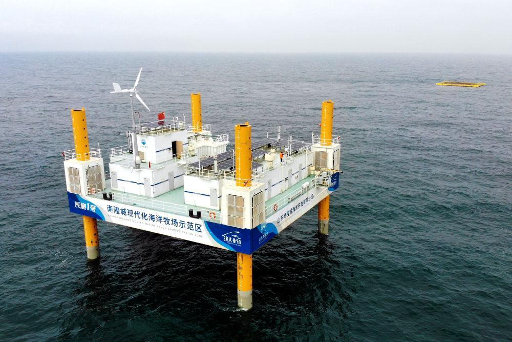 這是應用5G技術的山東長島綜合試驗區南隍城國家級海洋牧場示范區海上平臺(2020年8月8日攝,無人機照片)。中國(山東)自由貿易試驗區設立以來,一系列大膽試、大膽闖、自主改的政策逐步落實,制度創新打通堵點、釋放活力,成為深化對外開放、發展海洋經濟的重要抓手。