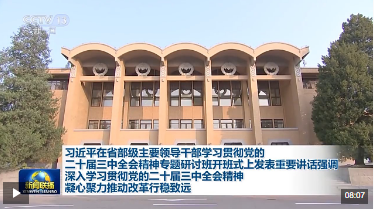 △省部級主要領(lǐng)導(dǎo)干部專題研討班開班式現(xiàn)場。(總臺央視記者郭鴻拍攝) 此次研討班,聚焦學(xué)習(xí)貫徹黨的二十屆三中全會精神。意義重大,時機關(guān)鍵。 在黨的二十屆三中全會上,總書記強調(diào),“學(xué)習(xí)好貫徹好全會精神是當(dāng)前和今后一個時期全黨全國的一項重大政治任務(wù)。” 全會閉幕至今已滿百日。全會召開以來,總書記主持召開中央政治局會議、中央全面深改委會議等重要會議,并赴東中西部地區(qū)考察調(diào)研,強調(diào)深入貫徹黨的二十屆三中全會精神,全力抓好改革任務(wù)的組織實施。新征程進一步全面深化改革,交出一份沉甸甸的“百日答卷”。 在此背景下,總書記為“關(guān)鍵少數(shù)”上關(guān)鍵一課釋放鮮明信號,也就是要把學(xué)習(xí)貫徹全會精神不斷引向深入,引導(dǎo)全黨全國人民堅定改革信心,更好凝心聚力推動改革行穩(wěn)致遠。