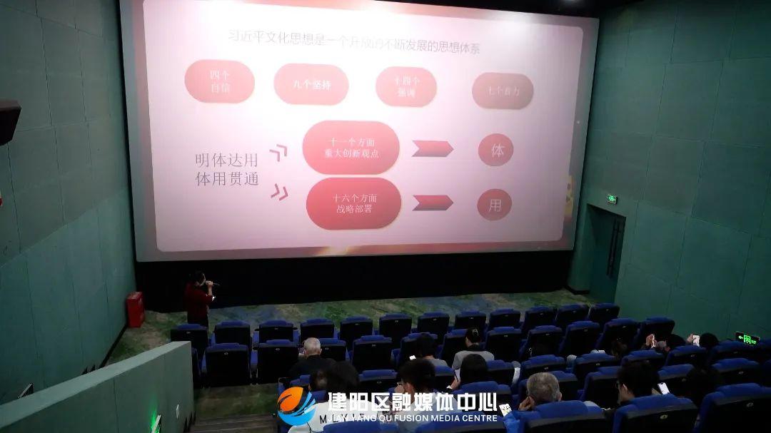 11月19日,由福建省委宣傳部指導,省電影局、南平市委宣傳部主辦,省電影發行放映有限公司、南平市文旅局承辦,省電影發行放映協會協辦,南平市委講師團、建陽區委宣傳部執行的2024年建陽區電影藝術黨課在中影星美國際影城(建陽店)舉行。