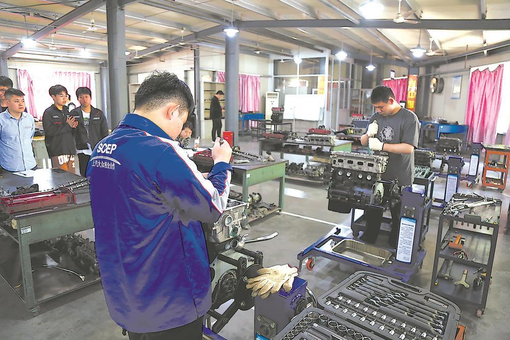 在福建工業學校,車企員工指導學生操作工具。(受訪者供圖) 疏通堵點:暢通人才之路 2019年,由國務院印發的《國家職業教育改革實施方案》明確指出,需“促進校企雙方全面深化合作”“職業院校應依據自身特色及人才培養需求,積極與符合條件的企業在人才培養、技術創新、就業創業等多個維度展開合作”。 記者走訪福建工業學校了解到,該校依據學校自身特色及人才培養需求,積極與寶馬等車企在人才培養方面展開多維合作。 “校企協同在職業教育領域具有重大意義。”福建工業學校汽車專業教學部主任余茂生表示,“在構建教育鏈的過程中,職業院校需深入研究企業所在產業的發展態勢和人才需求的變化,與企業建立專業共建機制。在人才培養層面,職校可邀請企業的人力資源專家參與職業指導工作,確保學生能夠了解企業崗位所需的能力標準。在產業鏈的構建上,職業院校可與企業聯合開展產學研合作項目,并積極組織師生與企業員工共同參與創新競賽活動,提升創新鏈條的效能。” 福建工業學校副校長黃曉麗認為,職業教育除了學校與企業間的合作外,政府與社會的作用也不容忽視。“政府部門已制定相關的政策法規,為校企協同提供堅實的政策保障與資金支持。社會則扮演著監督者與實施者的雙重角色,對校企協同的過程及其成效進行監督與評估。同時,社會也需要整合各類資源,為校企合作搭建有效平臺,促進信息交流、資源共享以及技術的流通。” |