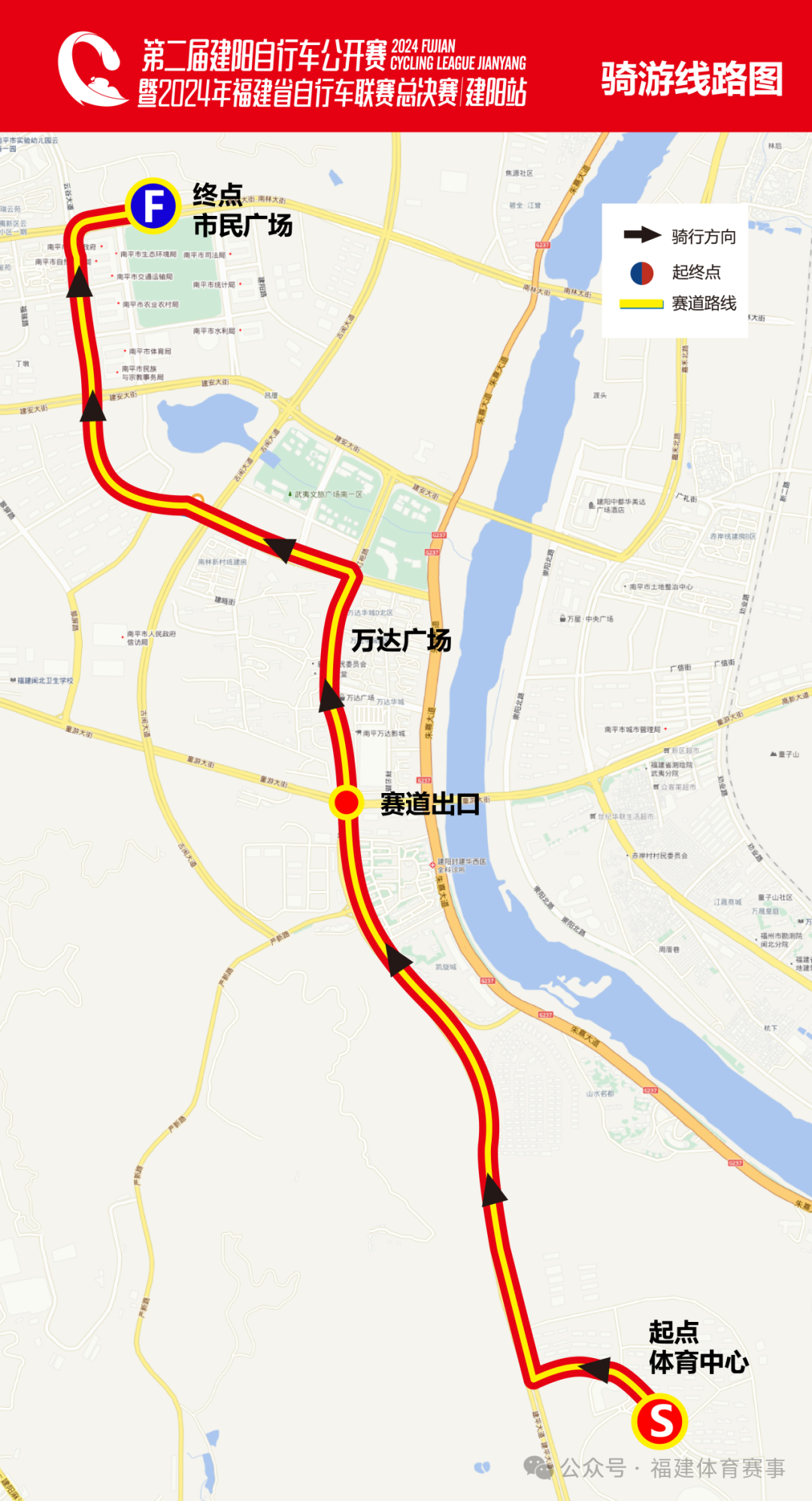 總決賽線路:南平市體育中心北門——體育路——建平大道——童游大街——崇陽溪大橋——崇陽北路——童曼路——嘉禾大道——潭陽大橋——潭陽隧道——潭陽大道——潭山大道——體育路——南平市體育中心北門(單圈總長約9.2公里,循環)?! ?/span>