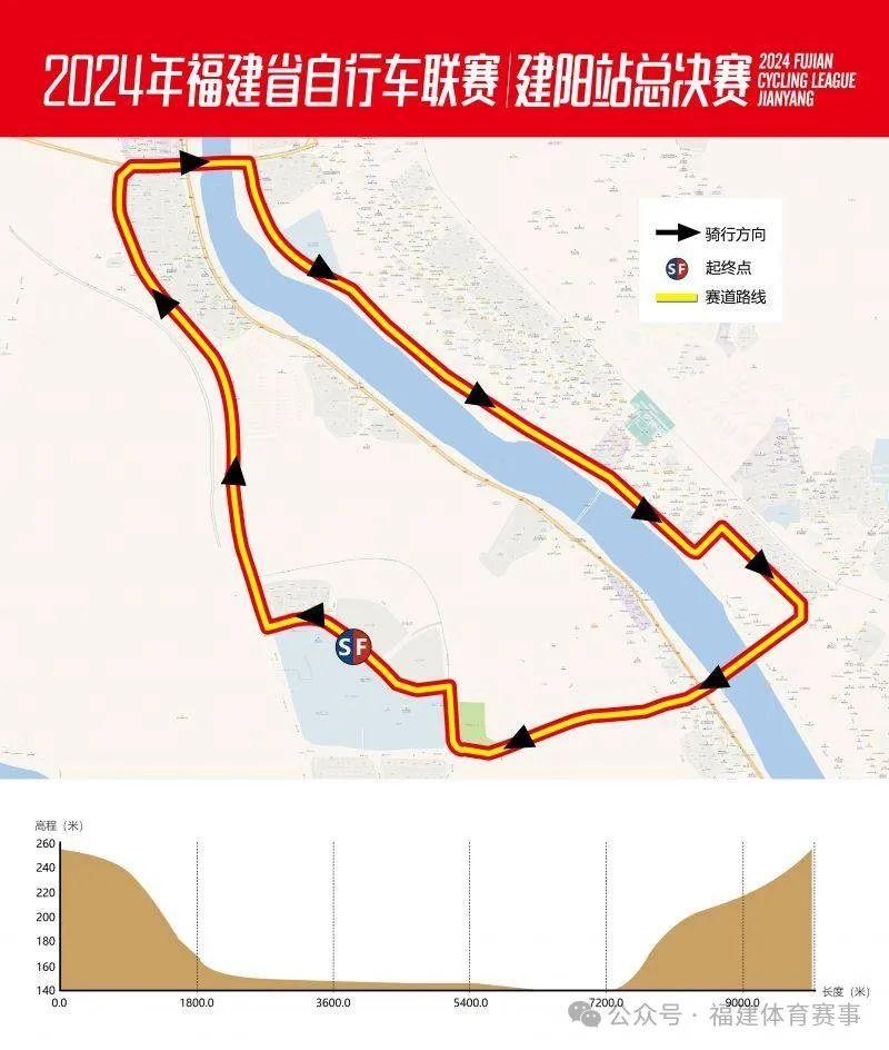第二屆建陽自行車公開賽暨2024年福建省自行車聯賽總決賽(建陽站)將于12月22日在南平.建陽舉辦,吸引著來自全國各地的騎行愛好者前來參賽。為確保賽事順利進行,請參賽選手仔細閱讀,確保賽事順利進行。 2024年福建省自行車聯賽建陽站比賽,因比賽當天氣溫較低,經組委研究決定,比賽整體時間推遲1個小時,即7:30分開始檢錄,8:30開幕式正式開始。所有競賽組別減少一圈。請參賽選手帶好證件按時前往賽事主會場南平市體育中心。 一、比賽安排 (一)比賽時間及地點 比賽時間:2024年12月22日 比賽地點:福建省南平市建陽區南平市體育場 (二)線路圖 1、競賽組(單圈9.3公里):