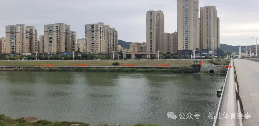 2、崇陽北路童游大街行人穿越點:行人統一從崇陽北路河邊棧道穿越崇陽溪大橋,如下圖