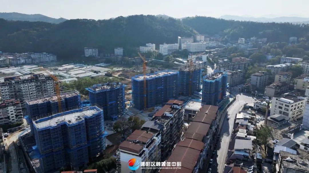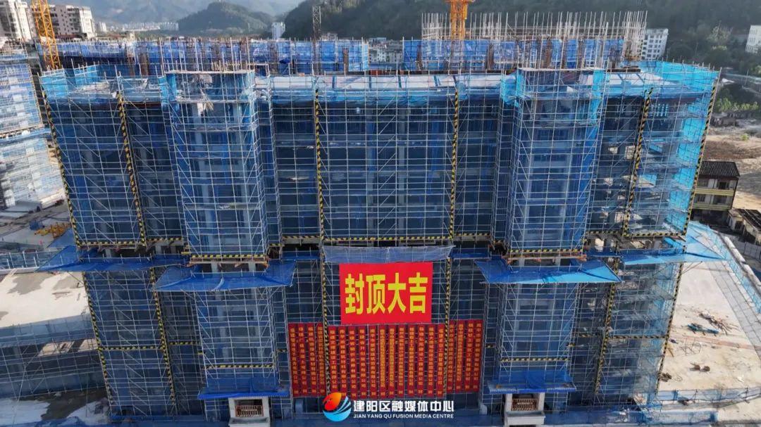 建陽區油化廠安置房小區——建本流香項目自2023年8月底開工以來進展順利,目前1號樓主體已完成封頂,其它樓棟主體工程正有序推進。