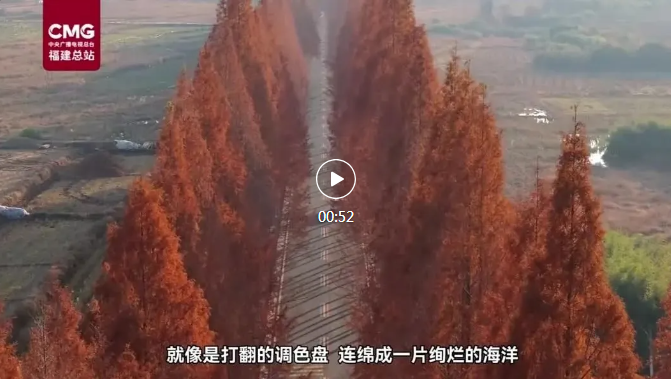 每年冬至節(jié)氣前后,福建南平建陽(yáng)區(qū)麻沙鎮(zhèn)公路兩側(cè)的水杉葉片逐漸由綠轉(zhuǎn)紅,就像是打翻的調(diào)色盤(pán),連綿成一片絢爛的海洋。