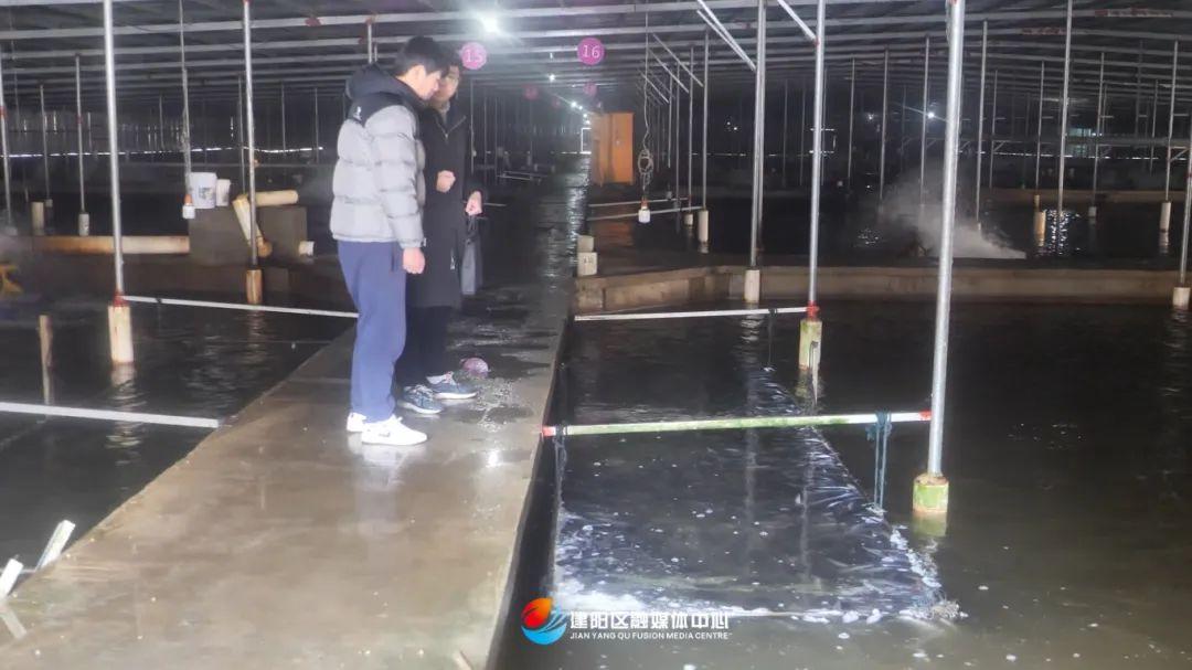 12月30日,區(qū)農(nóng)業(yè)農(nóng)村局水技站的工作人員來到童游街道的融順?biāo)a(chǎn)養(yǎng)殖基地,囑咐養(yǎng)殖戶要做好養(yǎng)鰻池水溫調(diào)節(jié)、防風(fēng)保暖措施。