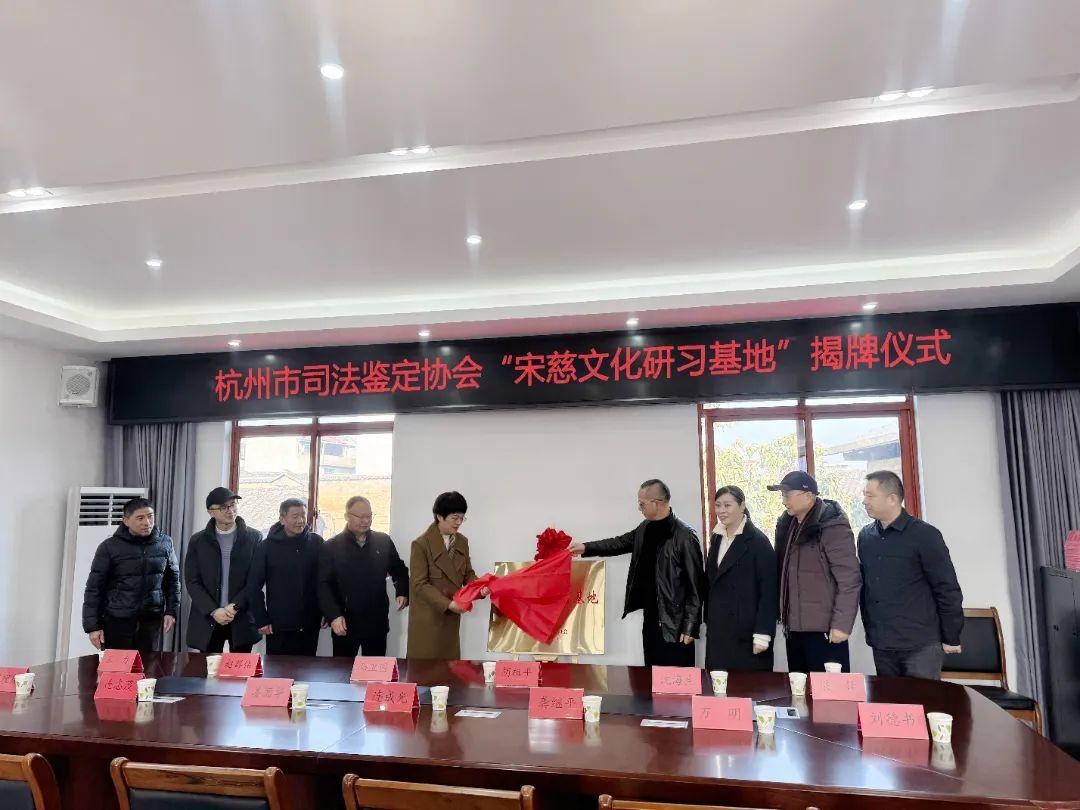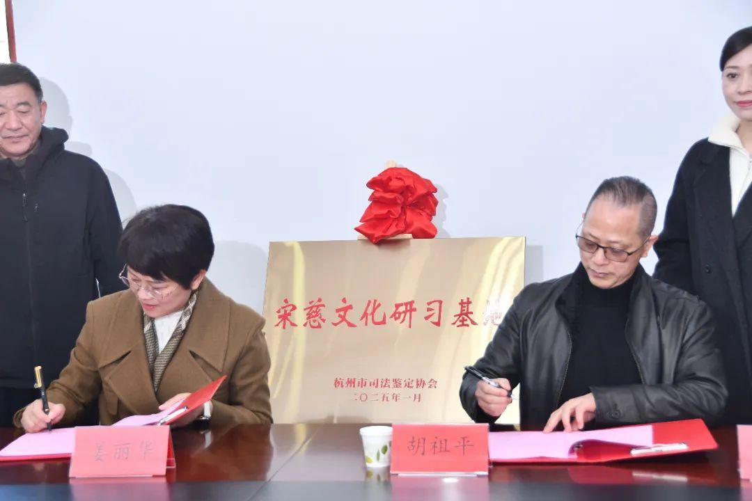 參觀結束,與會人員共同舉行杭州市司法鑒定協會“宋慈文化研習基地”揭牌儀式,并現場簽訂框架合作協議。未來,兩地將以崇雒鄉宋慈紀念園的豐富文化資源為依托,擬建立繼續教育培訓基地,定期舉辦各類研學活動,為司法鑒定行業的專業人員搭建深入研究宋慈法律文化的優質平臺。