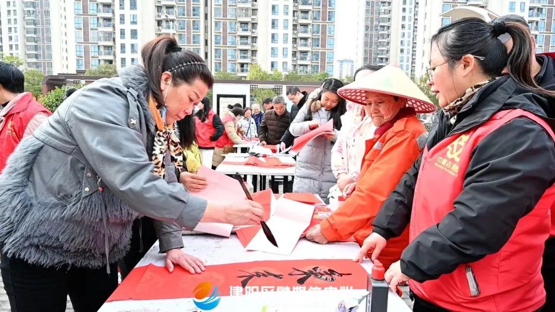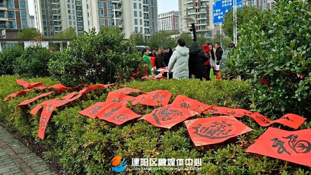 1月7日上午,建陽(yáng)區(qū)崇泰街道嘉禾社區(qū)聯(lián)合武夷新區(qū)管委會(huì)、區(qū)婦聯(lián)及福建鼎恒物業(yè)有限公司共同開(kāi)展“靈蛇賀歲?迎春送福”活動(dòng),通過(guò)寫(xiě)春聯(lián)、送春聯(lián)的方式,傳承和弘揚(yáng)傳統(tǒng)書(shū)法文化,豐富居民文化生活。當(dāng)天累計(jì)送出春聯(lián)、福字400余幅。