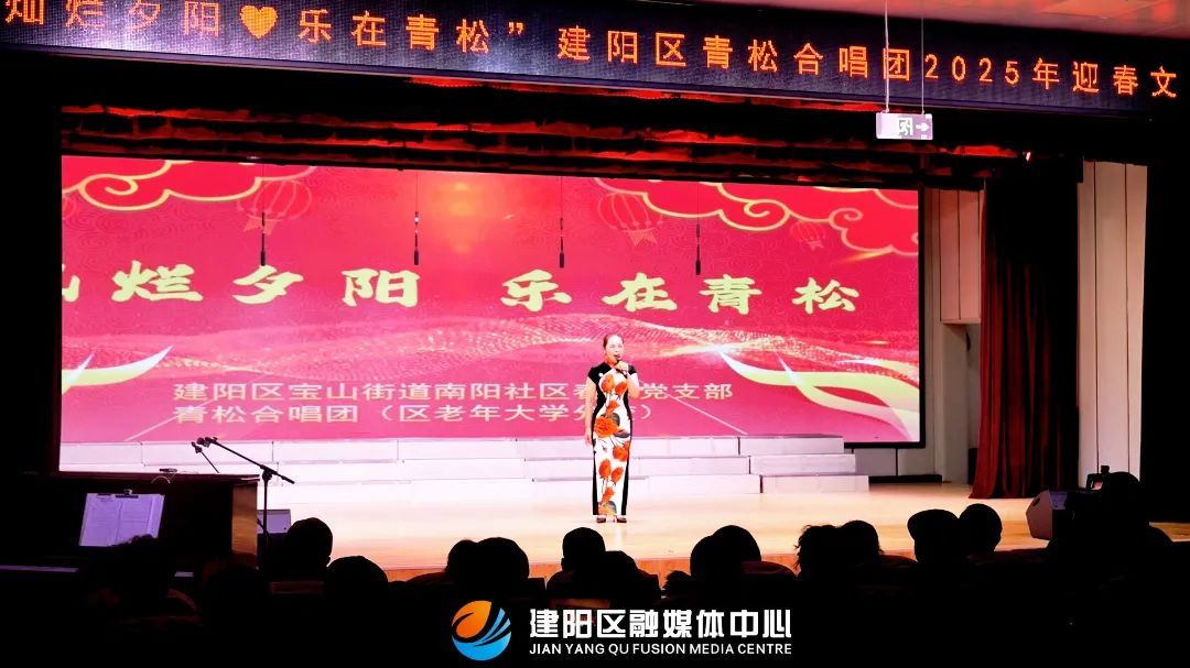 1月11日,建陽區寶山街道南陽社區春華支部先進事跡報告會暨青松合唱團(區老年大學分校)2025年迎春文藝匯演在老年大學舉行。