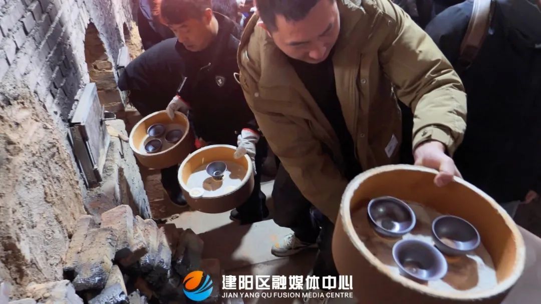 開窯節現場人頭攢動,精彩的大鼓表演拉開了活動的序幕。上午10點,在簡短的開窯祭祀禮后,厚重的窯門緩緩打開,隨著一個個匣缽被搬出,精美的建盞作品逐一展現在大家眼前。本次開窯節活動采用線上線下同步的形式,讓更多人了解到了建盞背后的文化與技藝。
