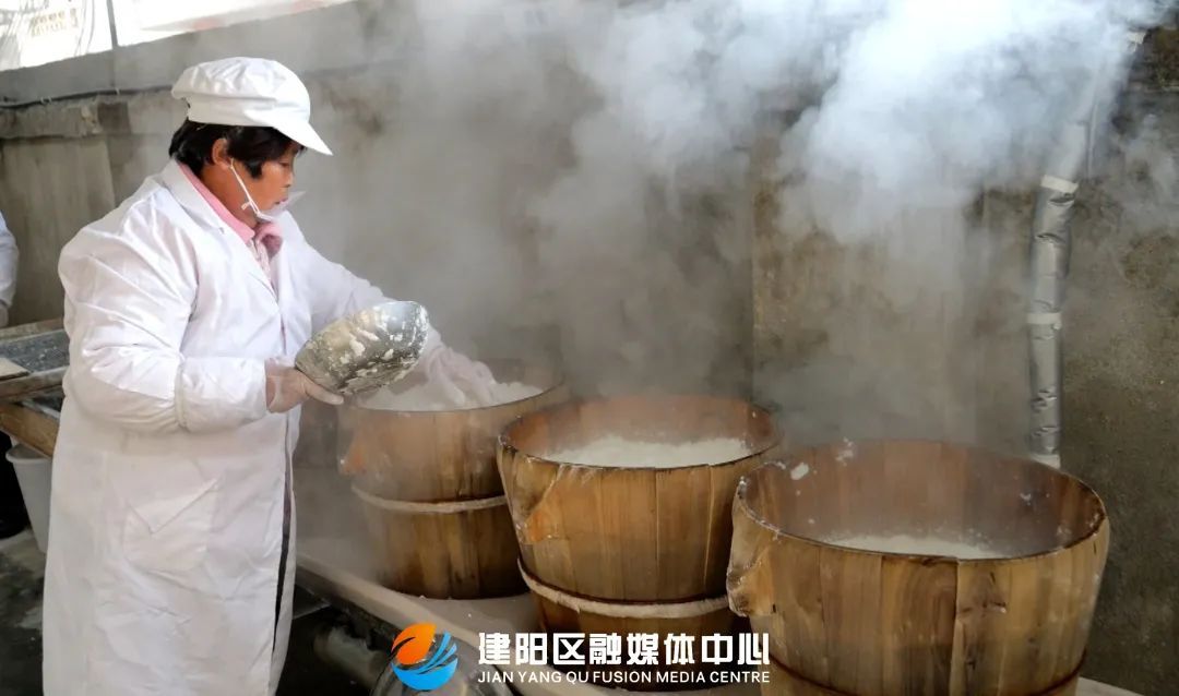 米粿,也稱作年糕,具有“年年高升”的美好寓意,是閩北尋常百姓家必備的年貨之一。臨近春節,在建陽區崇泰街道彭墩村,東塘一品年糕加工廠又迎來一年當中最忙碌的時候,村里的年味也隨著米粿的香氣撲面而來。