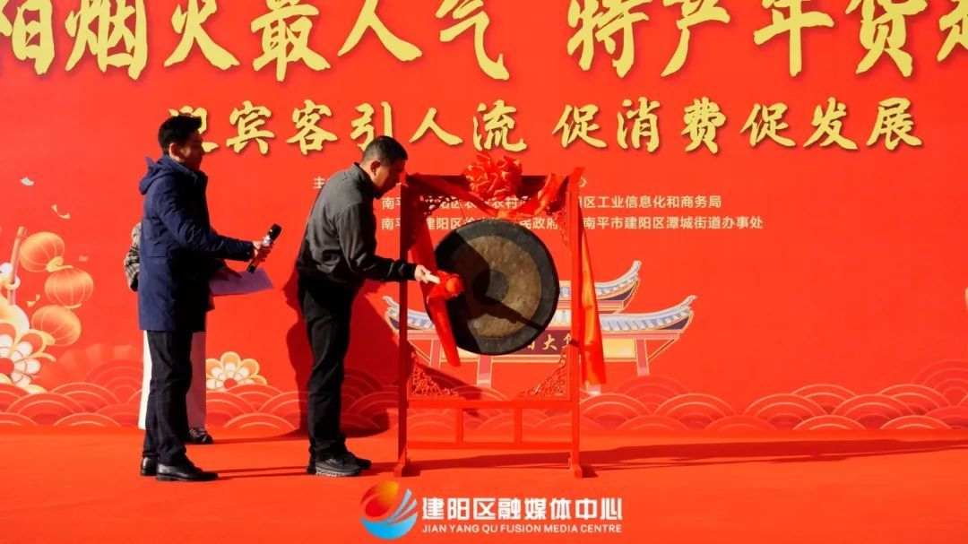 1月18日上午,主題為“潭陽煙火最人氣 特產年貨趕大圩”的建陽區鄉村年貨展銷活動,在潭城街道城關村潭陽大集啟動。區領導鄭穎培、李培文、張學玲、張華出席啟動儀式。