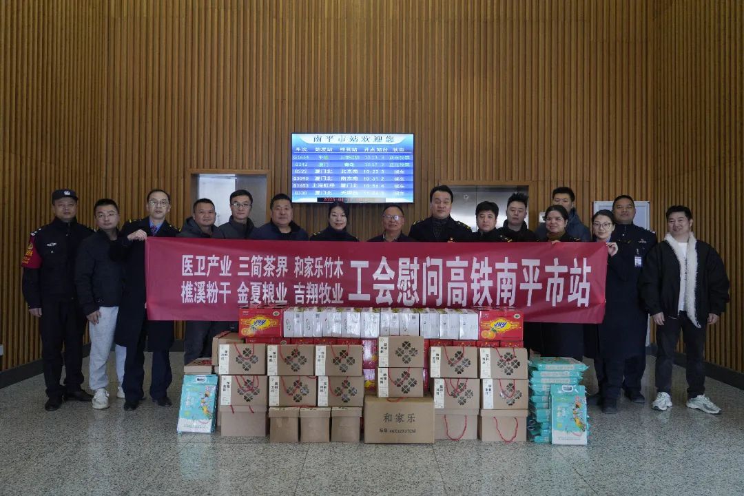 1月17日上午,建陽區總工會組織愛心企業到南平市高鐵站開展2025年春節期間“送溫暖”慰問活動。建陽區委常委、區總工會主席連成光,醫衛產業工會聯合會、福建三簡茶界供應鏈有限公司、福建省建陽區和家樂竹業有限公司、福建樵溪偉業食品公司、福建金夏糧業有限公司、南平市建陽區吉翔牧業有限公司等愛心企業工會負責人參加慰問,為堅守在春運一線的工作人員送上牛奶、大米、粉干、桔柚、竹筷等春節慰問品。 在慰問現場,慰問組詳細了解了南平市高鐵站及高鐵南平市站派出所在春節期間的主要業務工作與警務工作,對他們在過去一年工作中的辛勤付出表示由衷的感謝,向春運期間堅守在崗位一線的工作人員和民警致以節日問候與新春祝福。(蔡沁妍)