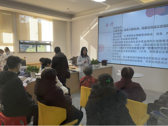 隨后,在慢病體檢中心,臨床醫(yī)學(xué)部博士研究生陳洪圓帶來《缺鐵性貧血》的宣講,通過結(jié)合課件深入淺出地講解缺鐵性貧血的發(fā)病原因、常見癥狀、對身體的危害以及如何預(yù)防,居民們紛紛表示受益匪淺。