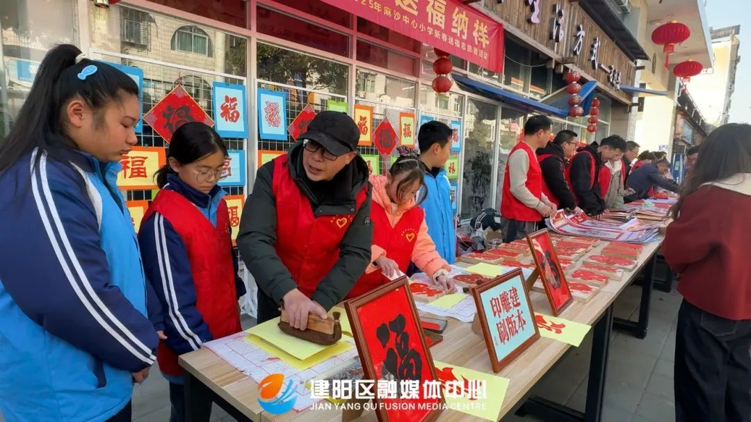 活動現場,志愿者們將一份份用建本工藝印制的“福”字、建本特色年歷及麻沙風光冰箱貼送到群眾手中,傳遞出濃濃年味;書法愛好者們揮毫潑墨,為群眾“接單”定制春聯;建本拓印技藝體驗,更讓大家深切體會傳統技藝的溫度與魅力。