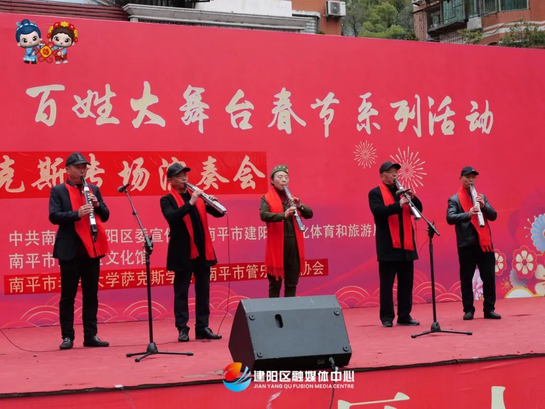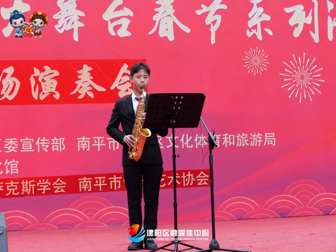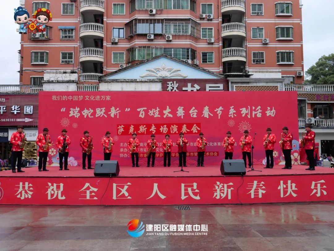 2月3日,正月初六,建陽區“瑞蛇躍新”百姓大舞臺春節系列活動——薩克斯專場在中山廣場上演,薩克斯表演者們為現場觀眾帶來了一場精彩的薩克斯演奏盛宴。