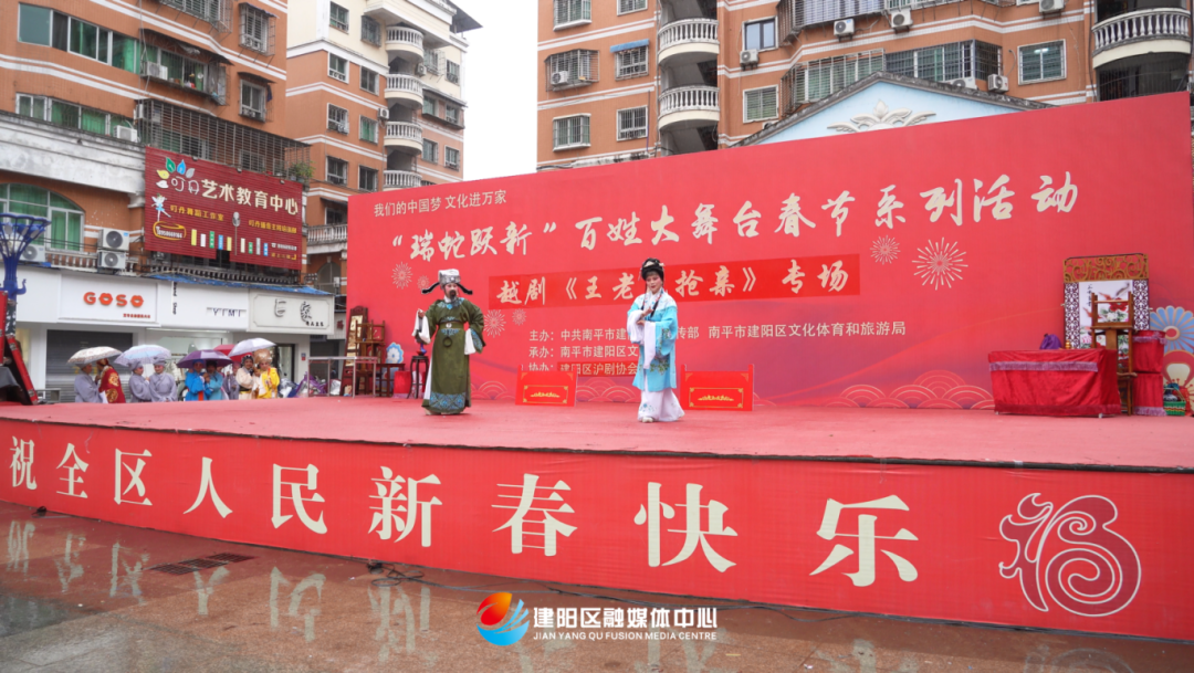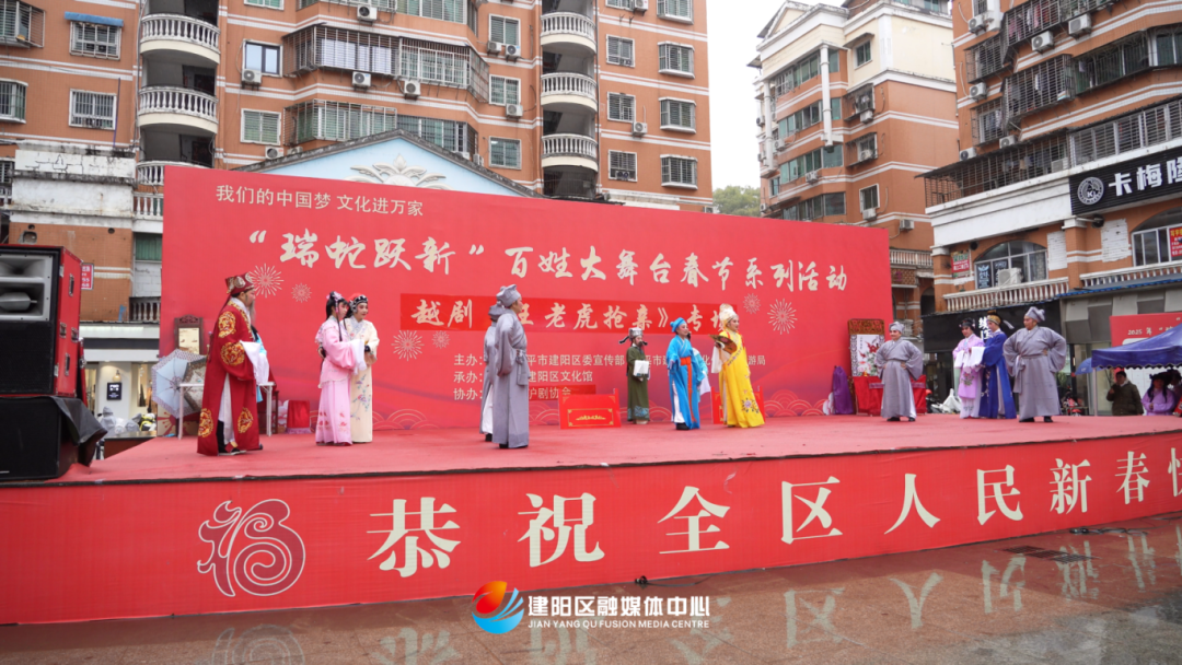 2月2日,正月初五,建陽區“瑞蛇躍新”百姓大舞臺春節系列活動——越劇《王老虎搶親》專場在中山廣場上演,為居民帶來一場豐富多彩的新春文化盛宴。本次活動由區委宣傳部、區文體旅局主辦,區文化館承辦,區滬劇協會協辦。