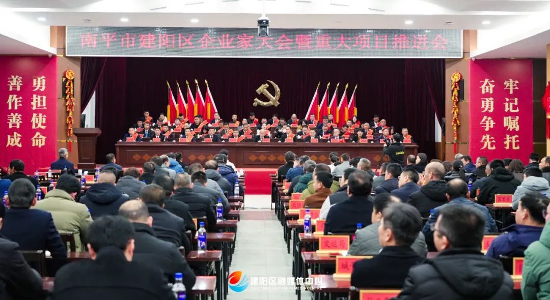2月6日下午,建陽區召開企業家大會暨重大項目推進會。區委書記謝啟龍出席并講話。區委副書記、區長王沖主持。區人大常委會主任鄭立新、區政協主席方丹青出席。