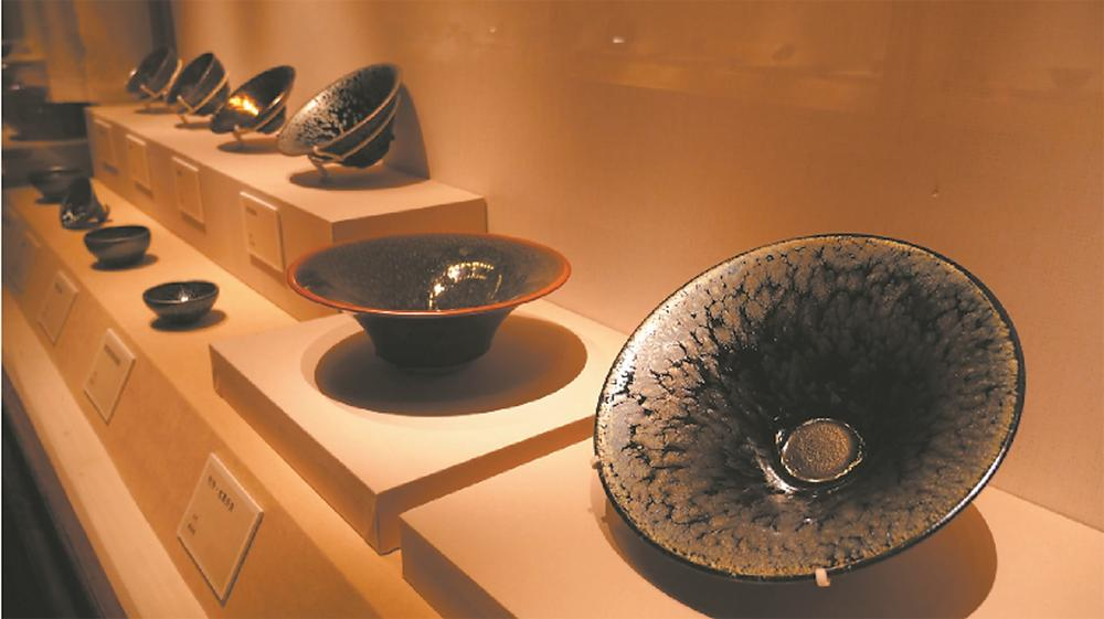 建盞作品“福祿雙至” 張少杰 攝 盞中星辰 輝耀海外 行至窯址西側不遠處,但見南浦溪潺潺而流。千年前,這里也曾舟帆片片。順流而下,匯建溪,入閩江,直奔滄海;溯游而上,抵浦城,越仙霞,可至中原。福泉二港興盛于宋,為海上絲路開啟暢通之門,建窯瓷業亦隨潮而升。 “宋元時期,建盞與建窯系黑釉瓷通過海上絲綢之路遠銷異域,深受日本、朝鮮半島、東南亞國家和地區人民的喜愛,在世界陶瓷史、茶史、文化藝術史上具有獨特的歷史地位和作用。”福建省非物質文化遺產協會建窯專委會顧問謝道華介紹道。 有時,建盞并未像尋常瓷器那般被隨意放置在福船隔艙,而是被日本僧侶精心裝裹于隨身經篋。宋時,日僧前赴后繼,前往浙江天目山拜師求經。歸國時,他們會帶走師傅的畫像和茶盞,既從禪宗“衣缽傳承”之俗,又合“茶禪一味”之意。 在最長的龍窯中經受高溫驟變,而后萬中選一,遠渡重洋。抵達東瀛的建盞已非尋常茶器,執盞者往往非富即貴。 日本南北朝時期(1336—1392年),新興武家貴族盛行斗茶,樂于炫耀建盞等茶具,一如《禪林小歌》所稱詠:“以擁有宋朝文物為榮耀,用它們來裝綴客廳,為聚會和酒宴助興吧!” 《大明別幅并兩國勘合》又載,永樂四年(1406年)正月十六日,明成祖朱棣賜予室町幕府足利義滿將軍“黃銅鍍金廂口足建盞一十個”,作為外交國禮。 成書于1511年的《君臺觀左右帳記》則記錄了足利義滿之孫足利義政所收藏的“東山御物”。其中提到,曜變是“建盞之無上神品”,值萬匹絹,油滴是“第二重寶”,值五千匹絹,兔毫盞則值三千匹絹。 數百年來,建盞塑造了日式審美,也驅策著日本瓷業的發展。 考古發現,13世紀后葉,日本瀨戶窯即開始仿燒建盞,直至江戶時代中葉仍未停歇。此后,美濃窯、志戶呂窯、初山窯等皆有仿燒,產品呈敞口或斂口,多施用鐵釉,圈足低,且圈足露胎不施釉,可以看出窯工在極力模仿建盞。當然,隨著時代變遷,這些日本窯址也在模仿中逐漸發展出自身特色。 時至今日,建盞依舊牽動著日本人的熾熱情感。 日本官方認定的“國寶”瓷器僅14件,建盞竟占去其中4席(計3件曜變盞、1件油滴盞)。現藏于日本靜嘉堂文庫美術館的曜變建盞更被奉為“天下第一名盞”。大正年間,三菱集團第二任社長巖崎彌之助購下此盞,所費資財在當時可購置1500套別墅。 建盞雅韻既醉東洋,亦傾諸國。