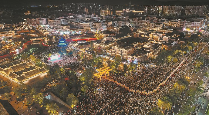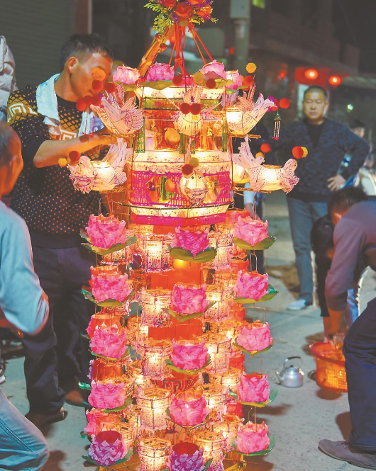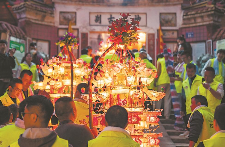 芷溪花燈游行。葉先鋒 攝 東南網(wǎng)2月12日報道(福建日報記者 徐士媛 羅小春 通訊員 黃水林) 核心提示 “春節(jié)——中國人慶祝傳統(tǒng)新年的社會實踐”被列入聯(lián)合國教科文組織人類非物質(zhì)文化遺產(chǎn)代表作名錄后,“非遺過大年”無疑成為乙巳蛇年春節(jié)的“重頭戲”。年味兒在韻味十足的非遺宴席中翻騰上涌。春節(jié)假期雖漸走遠,但新春余韻卻在接連不斷的非遺展演下持續(xù)縈繞著神州大地。 今天是正月十五,四方游龍聚中軸非遺匯演在北京舉行。其中,來自閩西的“姑田游大龍”將作為“閩西客家元宵節(jié)慶活動”的代表項目在北京中軸線上一展“天下第一龍”的風采。 閩西元宵節(jié)慶是參與“春節(jié)”申報人類非物質(zhì)文化遺產(chǎn)代表作的項目之一,早在2008年就被列入國家級非物質(zhì)文化遺產(chǎn)代表性項目名錄。在漫長的歷史傳承中,閩西元宵節(jié)慶不但沒有日漸式微,反而展現(xiàn)出愈加蓬勃的生命力。特別是2024年以來,閩西元宵節(jié)慶多次走出福建,亮相貴州、成都、廣州等地,書寫華麗篇章。 非遺魅力驚艷百年時光 閩西,是客家先民在文化里程中告別中原的終點和成為客家人的起點??图胰嗽谟杀毕蚰系拈L途跋涉中,不僅保留了古老漢民族的優(yōu)秀傳統(tǒng)文化,還吸收了閩越、畬、瑤等族的優(yōu)秀文化,形成了風情萬種、獨具特色的客家文化。興盛傳承于閩西的客家元宵節(jié)慶正是客家傳統(tǒng)文化的重要組成部分。 客家元宵節(jié)慶民俗活動,在縱向的年代和橫向的地域傳承著,是客家民系數(shù)百年發(fā)展的時間記憶。在閩西,以活躍于連城縣的姑田游大龍、芷溪花燈、新泉燒炮等最具特色。時至今日,客家元宵節(jié)慶仍被視為客家社會形態(tài)、傳統(tǒng)精神賴以世代相傳的重要載體,而這與其本身的習俗特點和文化魅力息息相關。 “客家元宵節(jié)慶最為顯著的一個特征便是內(nèi)容豐富,即便是同在連城,不同鄉(xiāng)鎮(zhèn)也會發(fā)展出不同的慶祝形式?!边B城縣文體旅游局副局長高小青表示,客家元宵節(jié)慶的幾大活動各有亮點。 游大龍宏偉壯觀。數(shù)百人擎起大龍穿村而過,從白日游至黑夜,從村頭鬧到村尾,村民簇擁大龍繞過田壟,穿過村道,見首不見尾的“神龍”令人震撼。 芷溪花燈精巧美麗。小紗燈、花籃燈、鯉魚燈、牡丹燈……百來個小燈組成一人高的花燈,再由鮮艷的綢花、人物繪畫、彩色玻璃珠等裝點花燈。點燈后,芯火透出通草紙,襯得花燈玲瓏剔透,花燈游行隊伍所到之處花團錦簇,明燭夜空。 新泉燒炮直白熱烈。1萬至10萬響的鞭炮在家門前燃起,頃刻之間,火光沖天,硝煙彌漫,“燒”出一年大發(fā)吉利之兆,而后煮雞下酒,宴請親友,場面蔚為壯觀。 閩西客家地處山區(qū),歷史上山高林密、地薄水深,形成各自的小社會,各個鄉(xiāng)鎮(zhèn)在傳承發(fā)展客家元宵節(jié)慶時將其與當?shù)氐娘L土人情和實際需要緊密結(jié)合。 大龍游行中,有的鄉(xiāng)鎮(zhèn)游的是板凳龍,有的鄉(xiāng)鎮(zhèn)游的是花燈龍;花燈巡游中,芷溪花燈重在匠心獨運的工藝技巧,撫市花燈則重在表演民間故事…… “客家元宵節(jié)慶的呈現(xiàn)形式不一而足?!备咝∏嗾f,參與者能在多元的表現(xiàn)形式中找到契合自身審美和興趣的地方,發(fā)現(xiàn)這些民俗活動的閃光點。 客家元宵節(jié)慶講究“全民娛樂”,活動的舉辦多以村為單位,而每年又會由村中的各個姓氏輪流做主辦者?;顒咏M織得好不好關系著家族榮譽,在全族通力合作的過程中還能進一步增強家族凝聚力。 每當元宵來臨之時,閩西客家人民還會邀請親朋好友前來參加活動,并設酒席。羅坊鄉(xiāng)下羅村村民羅禮通表示,元宵節(jié)慶提供了交流感情的機會,增強了親族之間的凝聚力和團結(jié)力,這也是他們重視元宵節(jié)慶的重要原因。 此外,客家元宵節(jié)慶還寄托著閩西客家人民最樸素的愿望。無論是在大龍身上寫滿“國泰民安”“風調(diào)雨順”等祝福語,還是每一盞花燈背后的動人故事等,都寓意著新的一年和諧幸福,是客家人民對美好生活的向往。 “客家元宵節(jié)慶豐富了當?shù)厝罕姷木裎幕?,幾百年來一直維系和吸引全體客家百姓參與其中。如今,這些民俗已經(jīng)成為客家人的深厚信仰。”高小青表示。 世代傳承延續(xù)文化血脈 元宵節(jié)慶前一個多月,芷溪花燈制作技藝代表性傳承人黃世平忙得不可開交。今年輪到村里的邱姓一族出燈,黃世平和徒弟同往年一樣承擔起為出燈宗族制作花燈的重任。 在一眾做燈的老師傅中,幾張年輕面孔格外引人注目。“這位是假期返鄉(xiāng)的大學生,他一到假期就往我這兒跑,另外兩位小女孩是本地中學的學生,今年也來學習制作花燈?!秉S世平介紹道。 黃世平口中常往他家跑的大學生名叫黃志翔,目前是江西宜春學院的一名在校生,同時也是芷溪古村大學生志愿服務隊的牽頭人。黃志翔告訴記者,保護傳承包括芷溪花燈在內(nèi)的芷溪古村傳統(tǒng)民俗文化,是他組建這一志愿服務隊伍的初衷。 每一個芷溪人與花燈的緣分在幼時便已建立。 “小的時候,家人常常帶我去參加村里的民俗活動,久而久之,我就喜歡上了這些民俗活動?!秉S志翔說,小時候由于力氣不足,自己只能在旁觀看,而后隨著年齡的增長,漸漸地