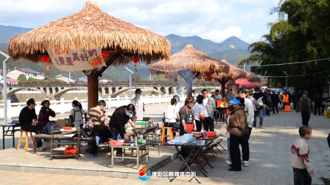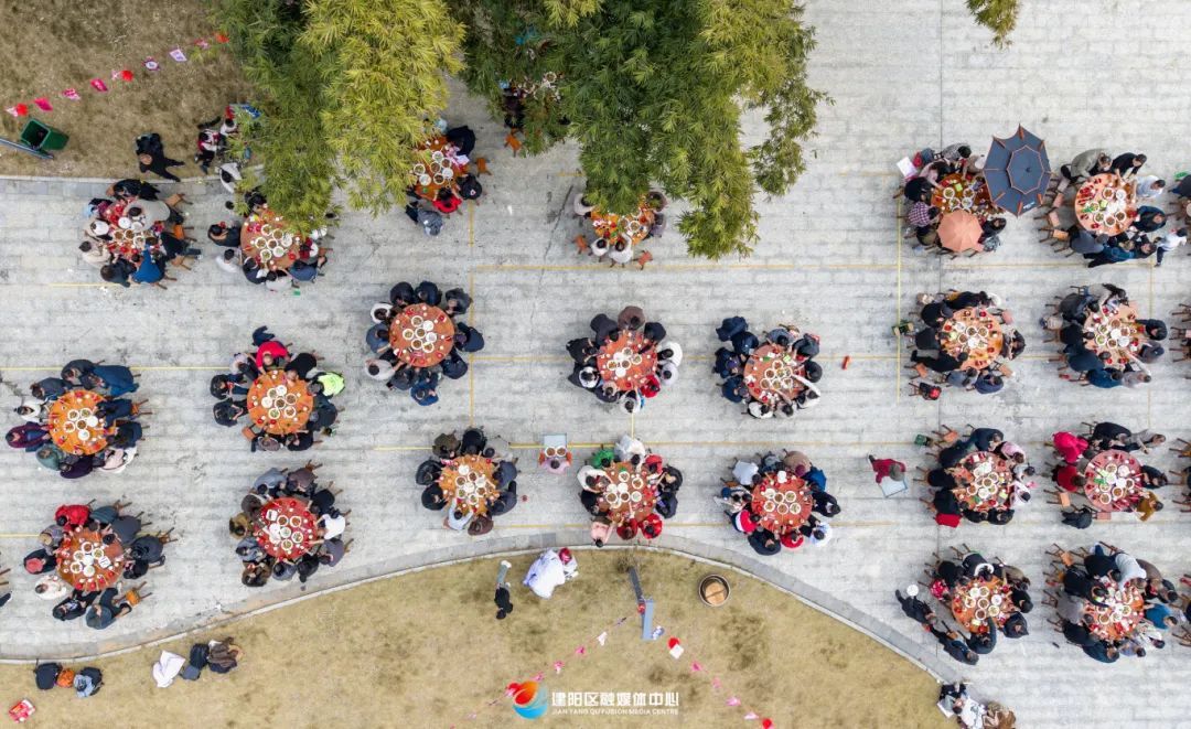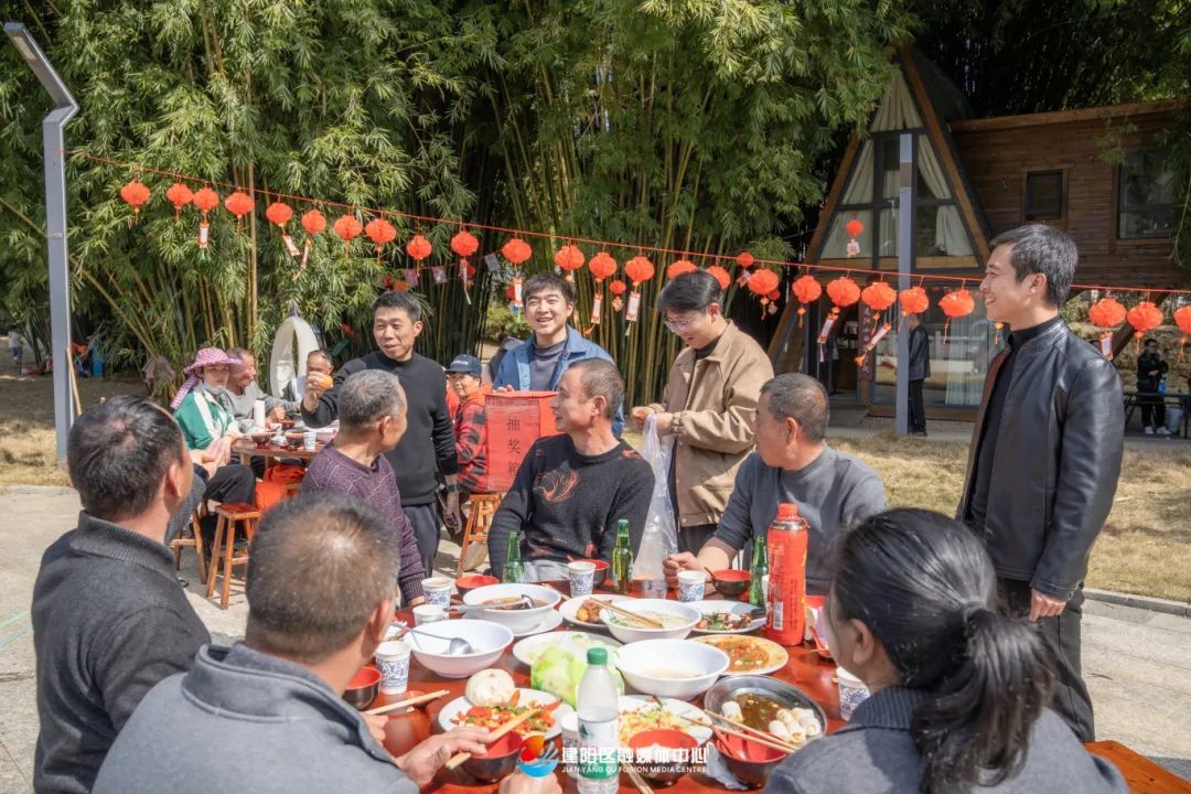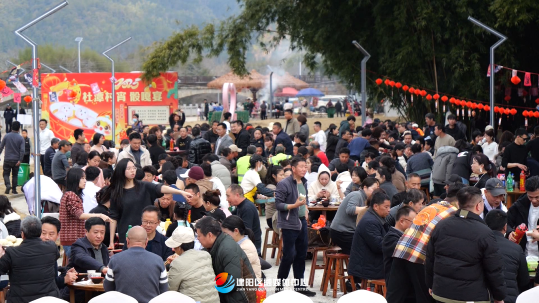 正午時分,杜潭元宵團圓宴正式開席。樵溪團圓粉、建本玉卷、游酢和羹、蔡氏福排、麻沙豆干等一大批以麻沙特色文化為主題精心制作的美食紛紛亮相。游客們圍席而坐,嘮家常、話幸福,處處都是團圓的味道。