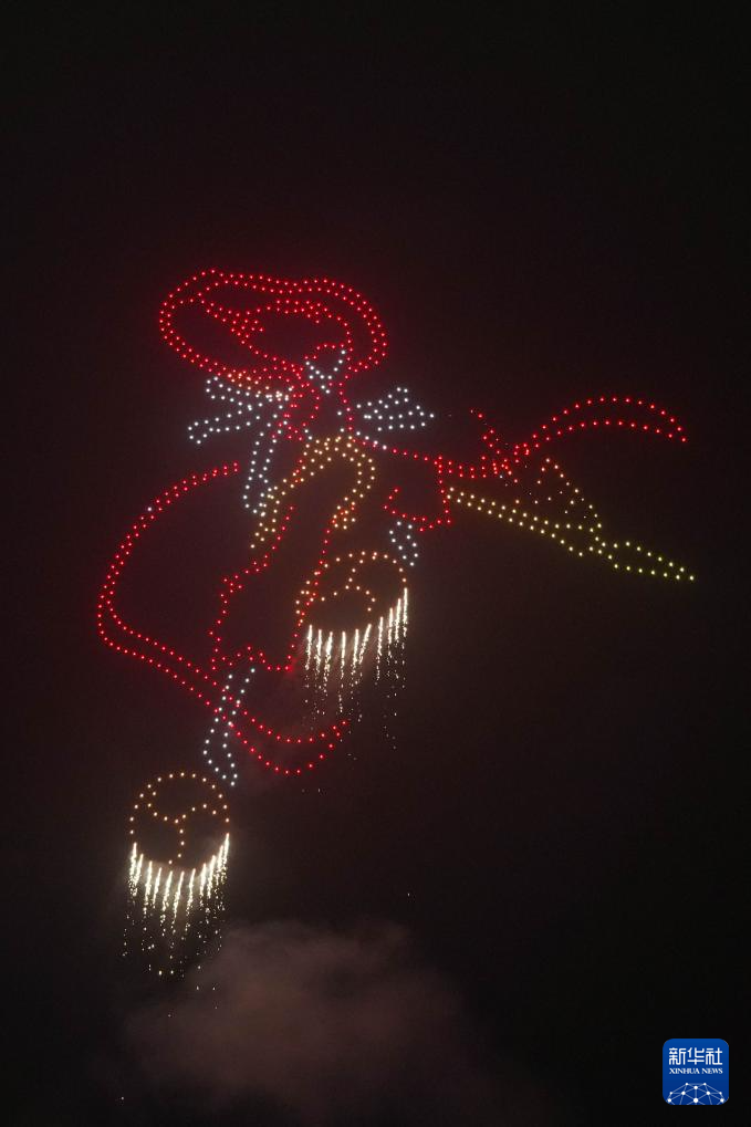 這是2月15日在湖南省瀏陽市天空劇院拍攝的“春焰啟幕 星耀瀏陽”周末焰火秀無人機表演。 2月15日,一場主題為“春焰啟幕 星耀瀏陽”的周末焰火秀在湖南省瀏陽市天空劇院上演,吸引觀眾欣賞。 新華社記者 薛宇舸 攝 |