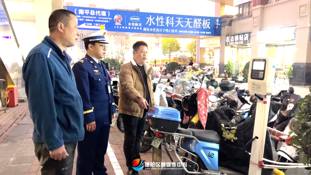 近日,建陽區消防救援大隊聯合物業服務企業到萬達小區沿街店面開展電動自行車消防安全夜查行動,切實做好電動自行車消防安全防范工作。