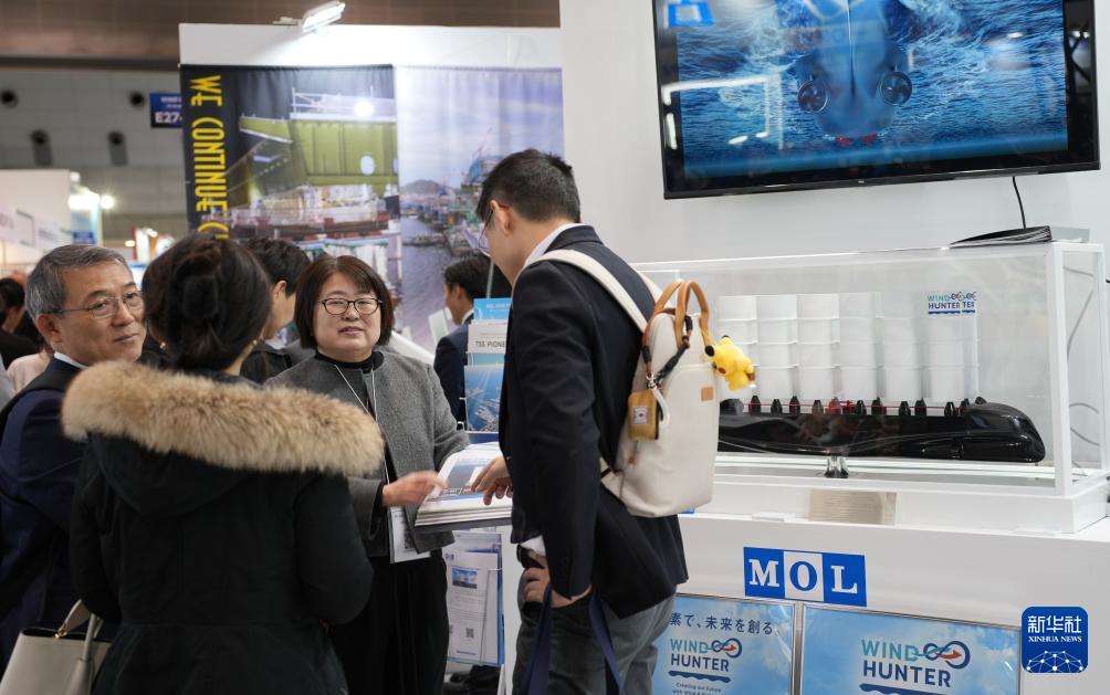 2月19日,在日本東京國際展覽中心,參觀者在日本商船三井公司展臺了解“捕風者”項目。 為期3天的第23屆日本“智慧能源周”21日在東京國際展覽中心閉幕。展會匯集來自約40個國家和地區的近1600家企業和機構,展示了氫能、燃料電池、蓄電池、風力發電和太陽能發電等領域的最新技術和解決方案。 新華社記者 錢錚 攝