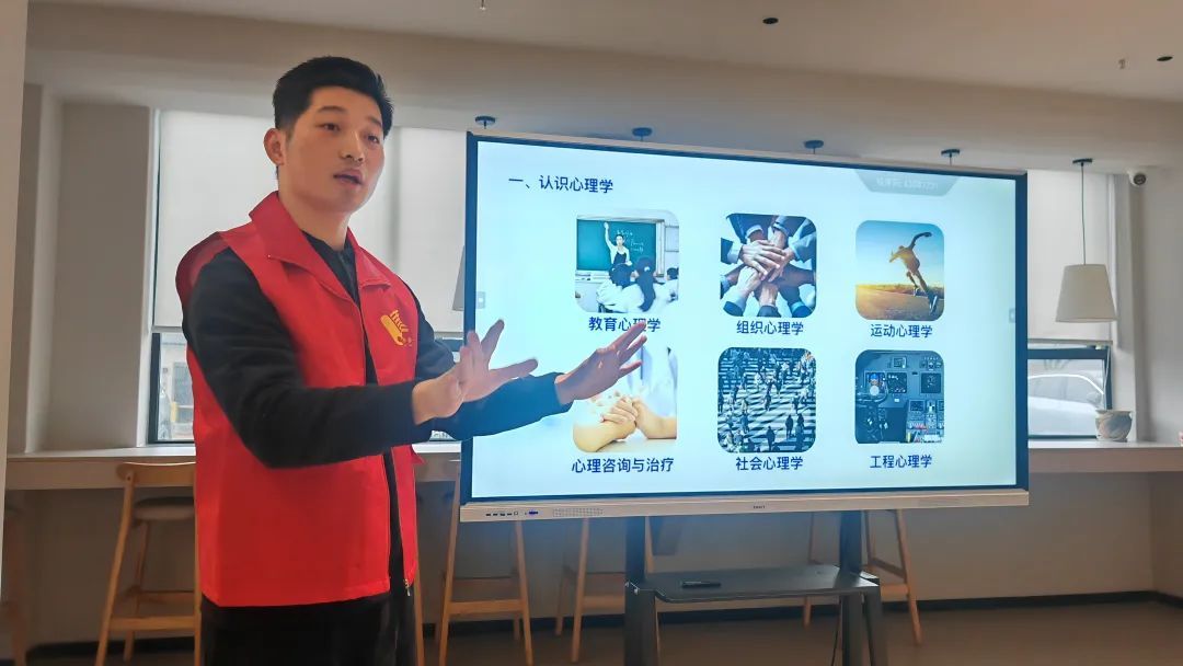 春節期間,潭陽書舍花海公益書吧內洋溢著濃厚書香,共有411名返鄉大學生志愿者及在潭院校學生志愿者參與了潭陽書舍的各類領閱讀活動和志愿服務中,讓書舍充滿青春活力,也為全民閱讀增添了一抹亮麗色彩。 近日,這里迎來一位特殊的領讀者——成功考取北京師范大學心理學碩士研究生的黃俊杰,帶著知識與感恩,為書吧帶來一場別開生面的“新春心理充電站——解鎖生活中的心理密碼”科普活動。