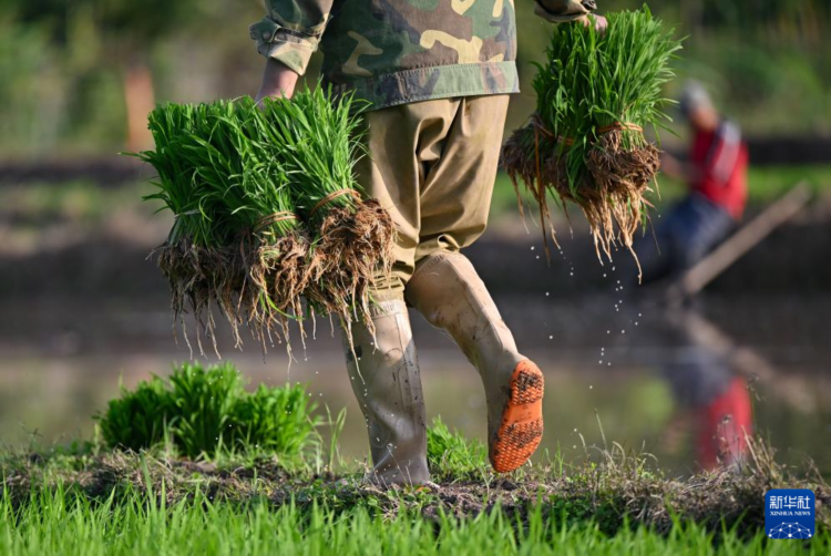 2月20日,海南省白沙黎族自治縣牙叉鎮的農民在搬運秧苗。 早春時節,海南的農民不負農時,忙著播種與收獲,田間地頭一派農忙景象。 新華社記者 郭程 攝