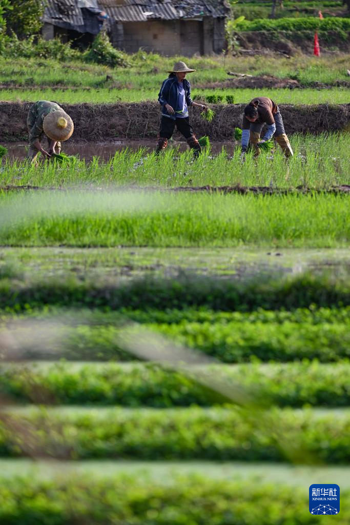 2月20日,海南省白沙黎族自治縣牙叉鎮的農民在插秧。 早春時節,海南的農民不負農時,忙著播種與收獲,田間地頭一派農忙景象。 新華社記者 郭程 攝 |