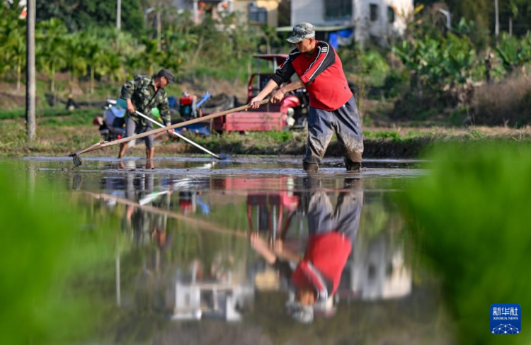 2月20日,海南省白沙黎族自治縣牙叉鎮的農民在整地。 早春時節,海南的農民不負農時,忙著播種與收獲,田間地頭一派農忙景象。 新華社記者 郭程 攝