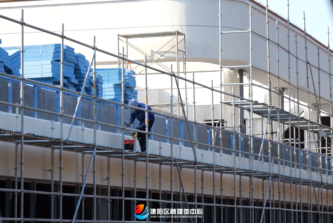 建設單位負責人告訴記者,進入春季天氣多變,持續的陰雨天氣容易影響施工進度。為確保三月中旬能完成所有外墻施工,施工團隊科學調度人力,利用短暫的晴好天氣,加班加點推進戶外施工進度。目前,整個工地每天約有180名左右施工人員,同時推進外墻及室內砌筑粉刷、水電管預埋及鋁合金窗框安裝等施工。